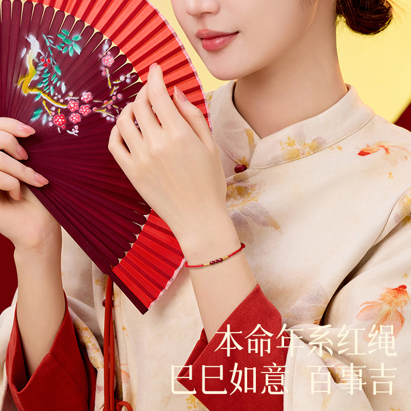 今笙记天然老桃木红绳手链女款朱砂手串转运珠本命年红手绳脚链女