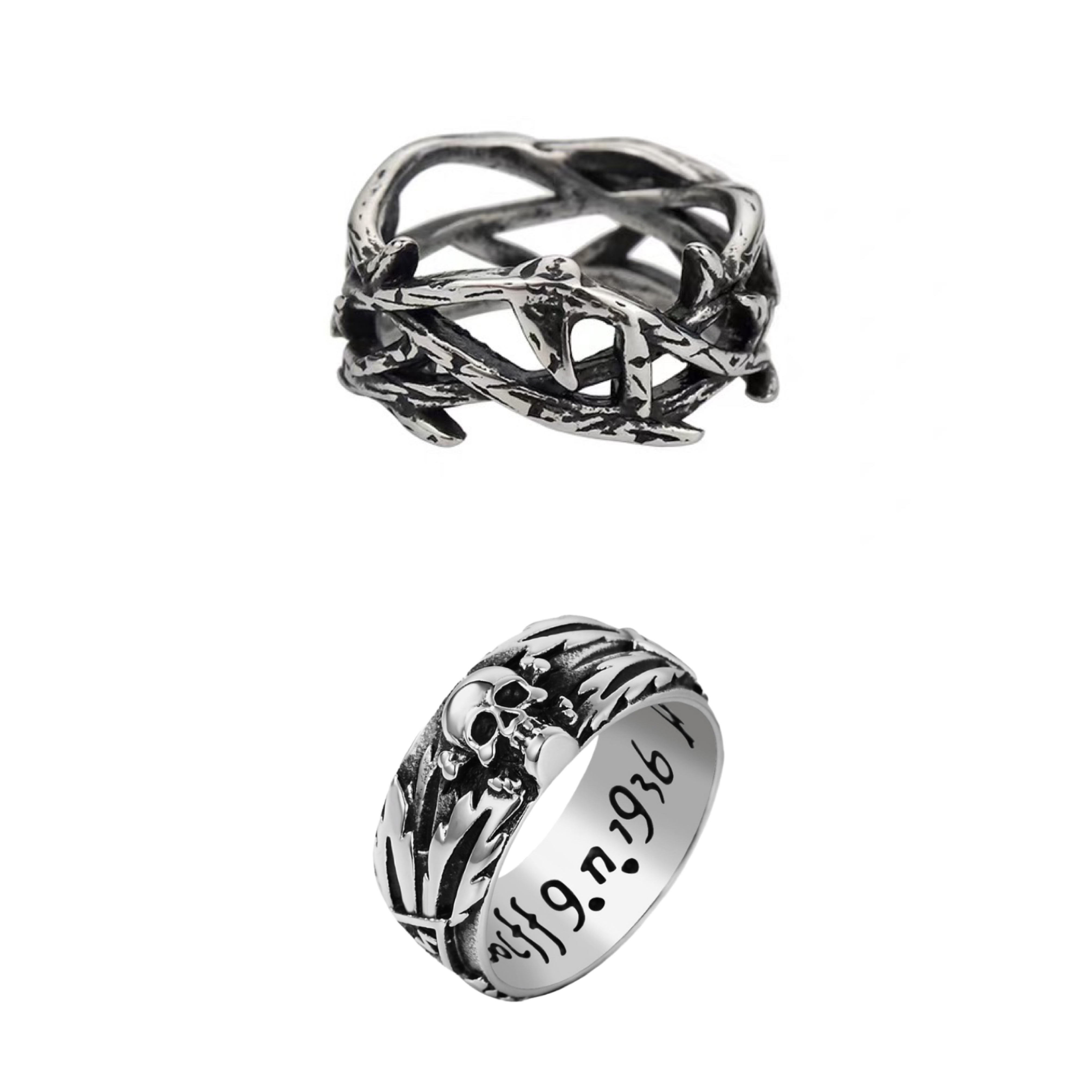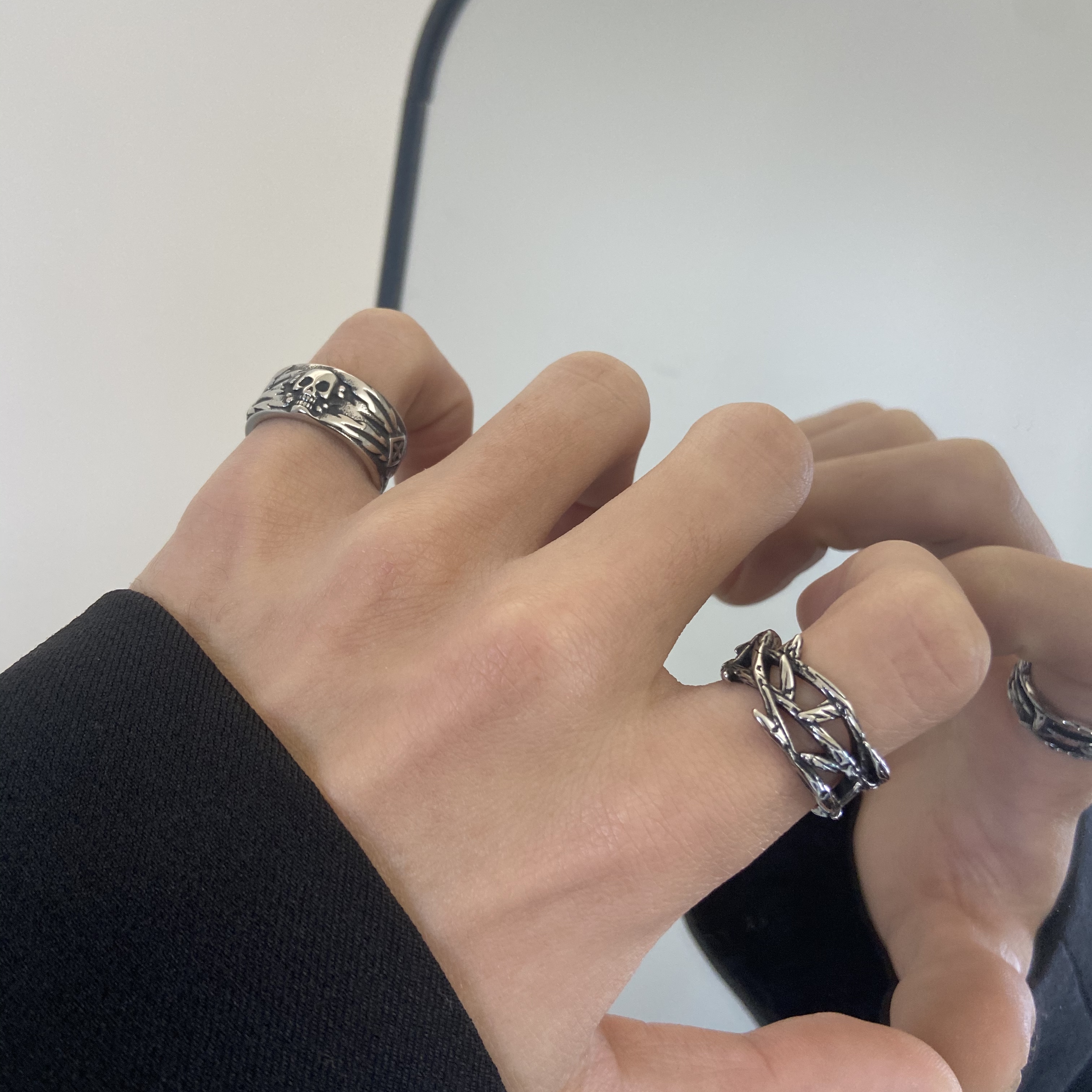 荆棘戒指男士 钛钢不掉色 复古朋克十字架骷髅头食指戒中指环女酷