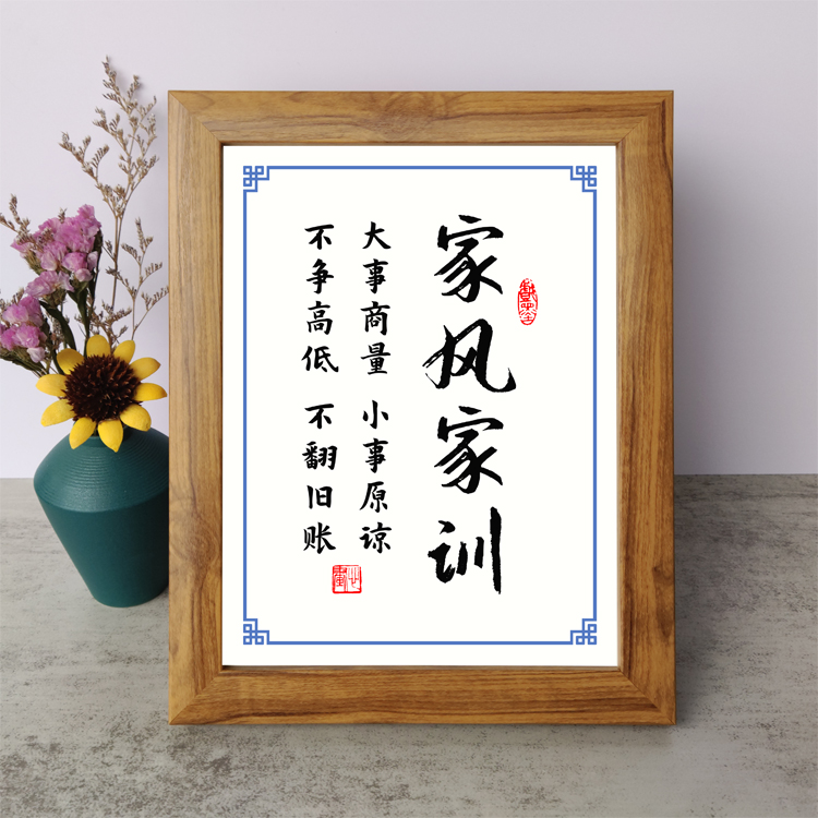 家庭和睦家风家训书法励志摆件书桌面实木相框字画摆件挂画座右铭