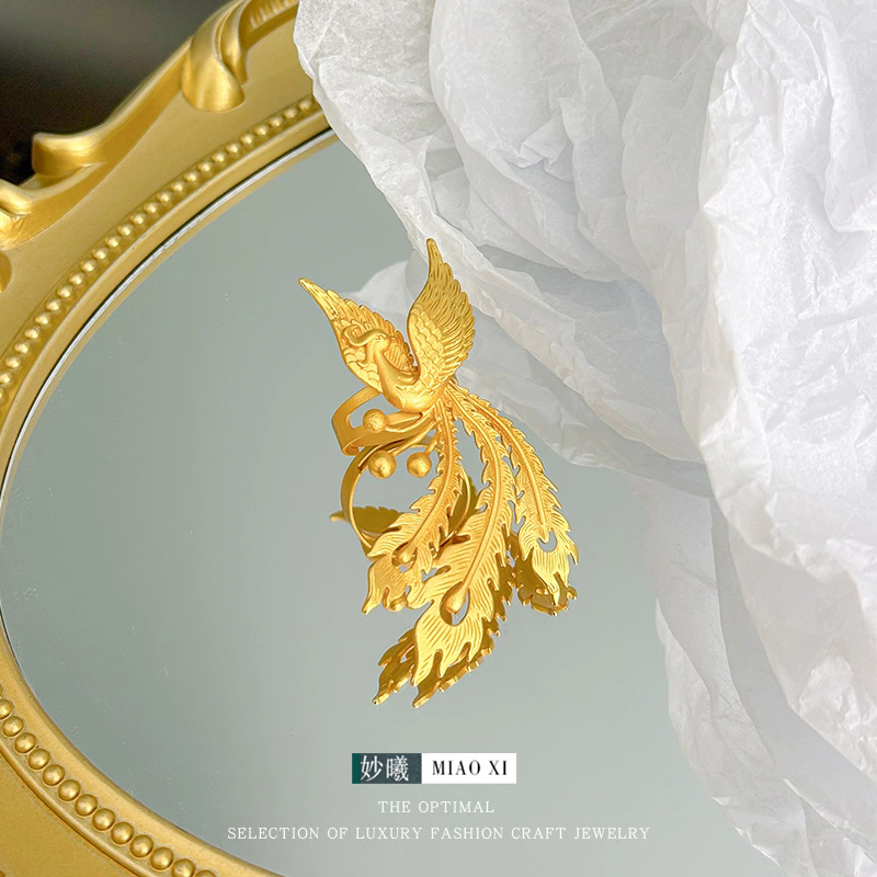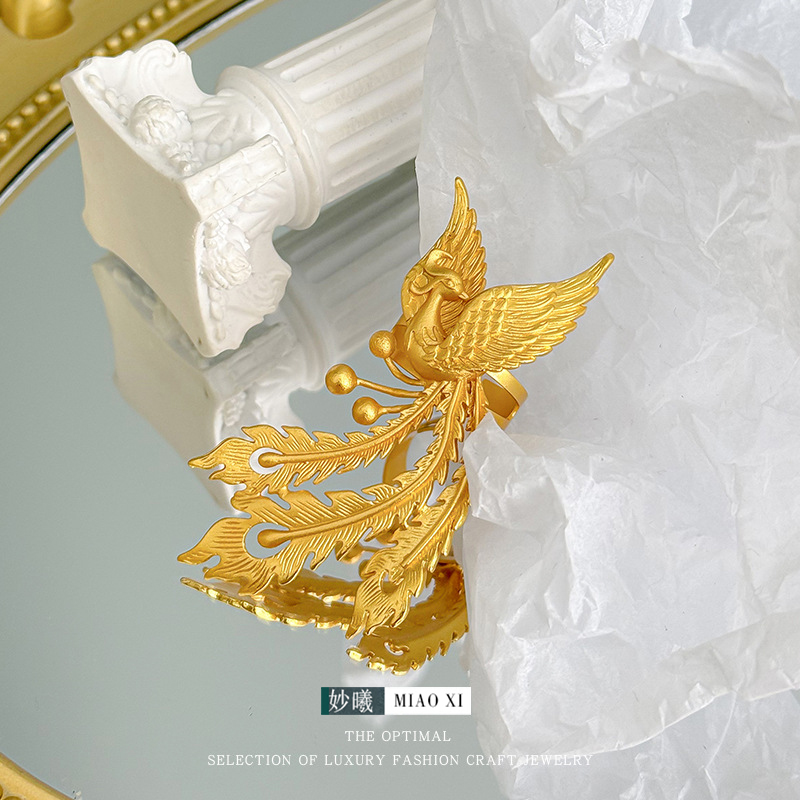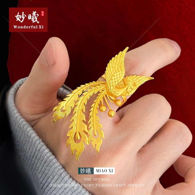 妙曦古法沙金凤凰戒指女新娘结婚三金轻奢仿真黄金宫廷风摄影道具