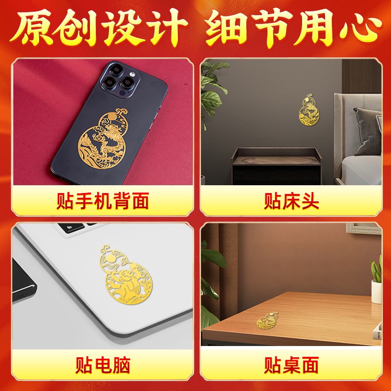 现货速发龙年2024门贴十二生肖属龙狗牛羊兔手机贴桌面随身金属贴