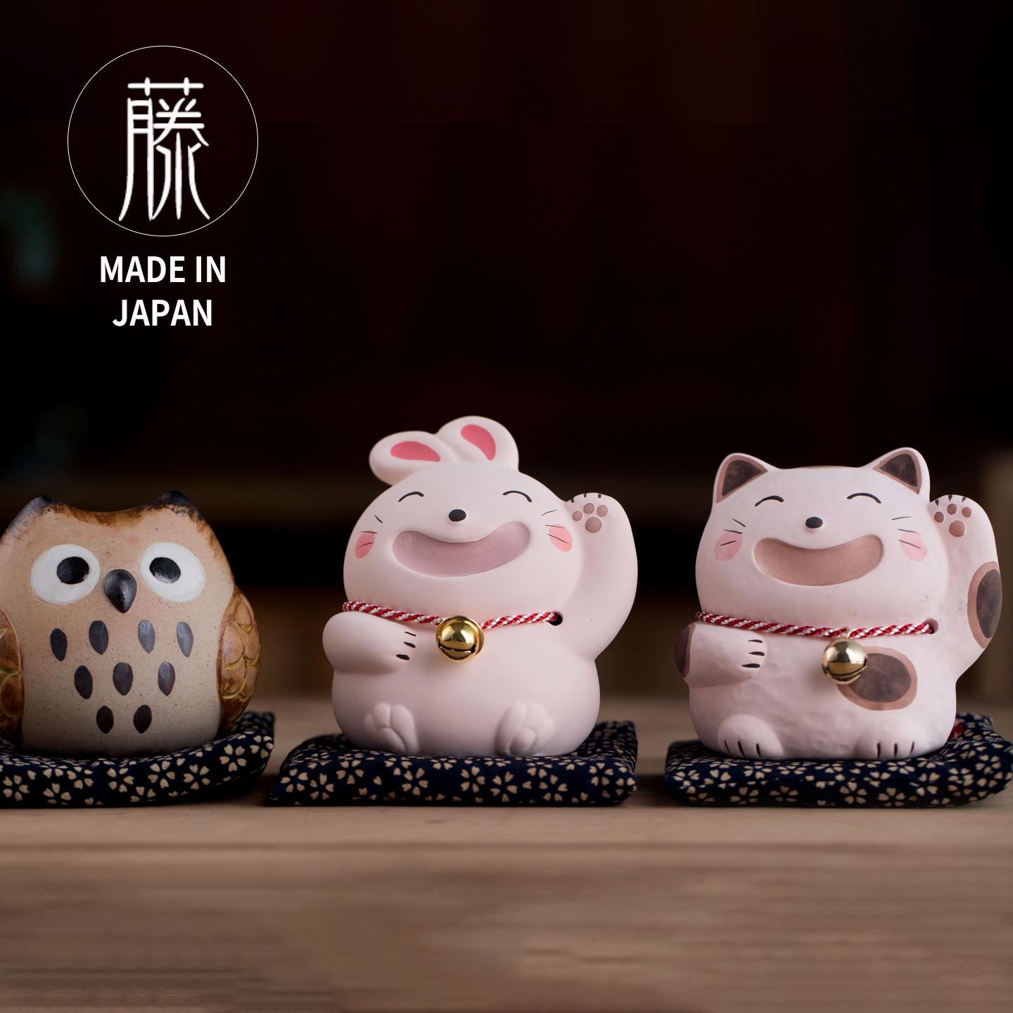 可可爱爱。日本制原装进口万古烧陶瓷桌面摆件招财猫吉祥乔迁礼物