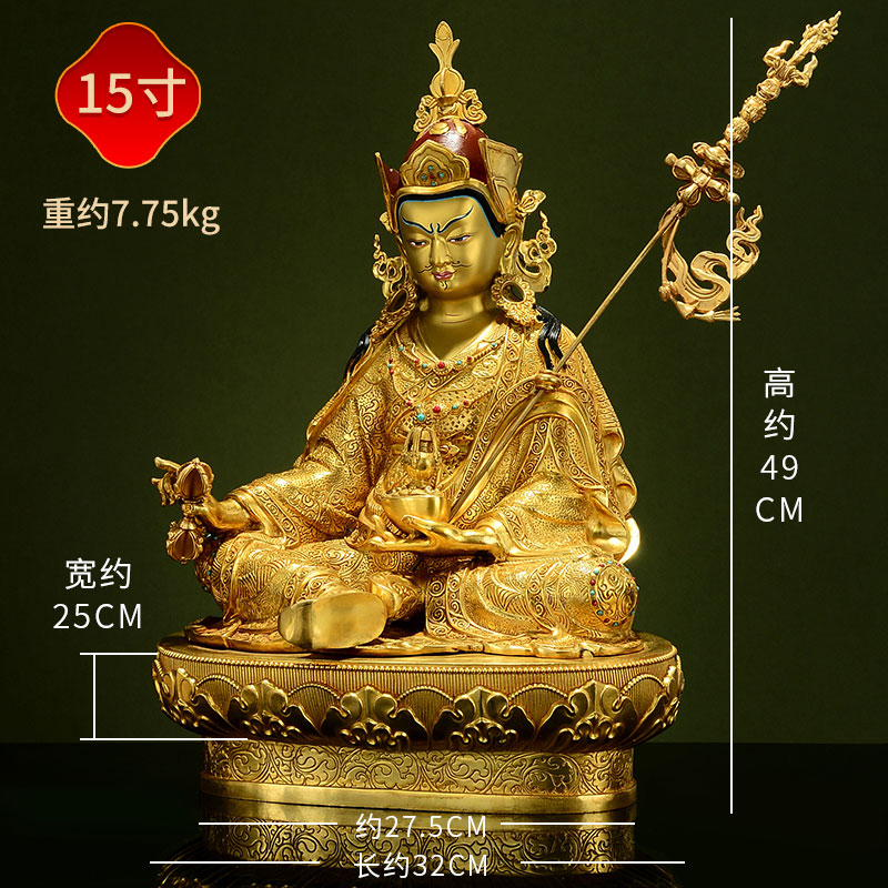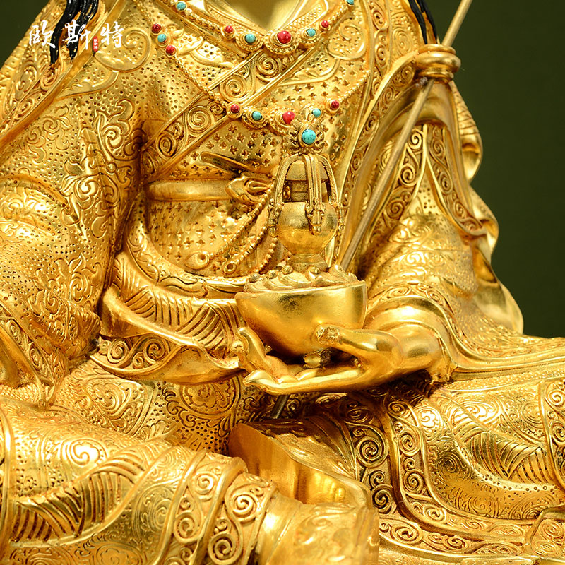 欧斯特精工铜《莲花生大士》全鎏金客厅家用《莲花生大师》15寸