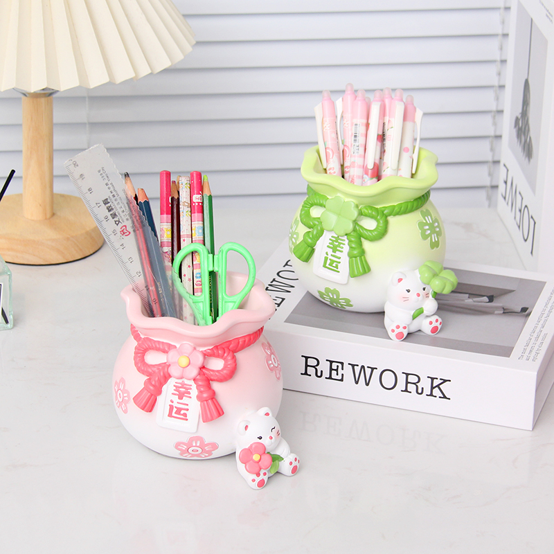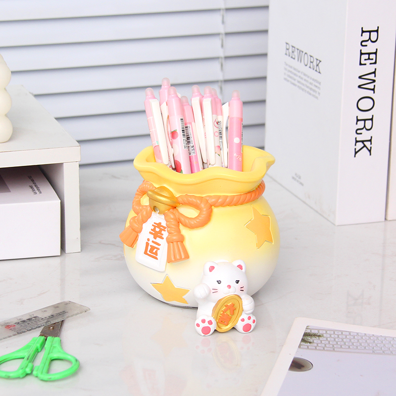 创意可爱招财猫笔筒摆件儿童学习桌面文具收纳装饰品女生生日礼物