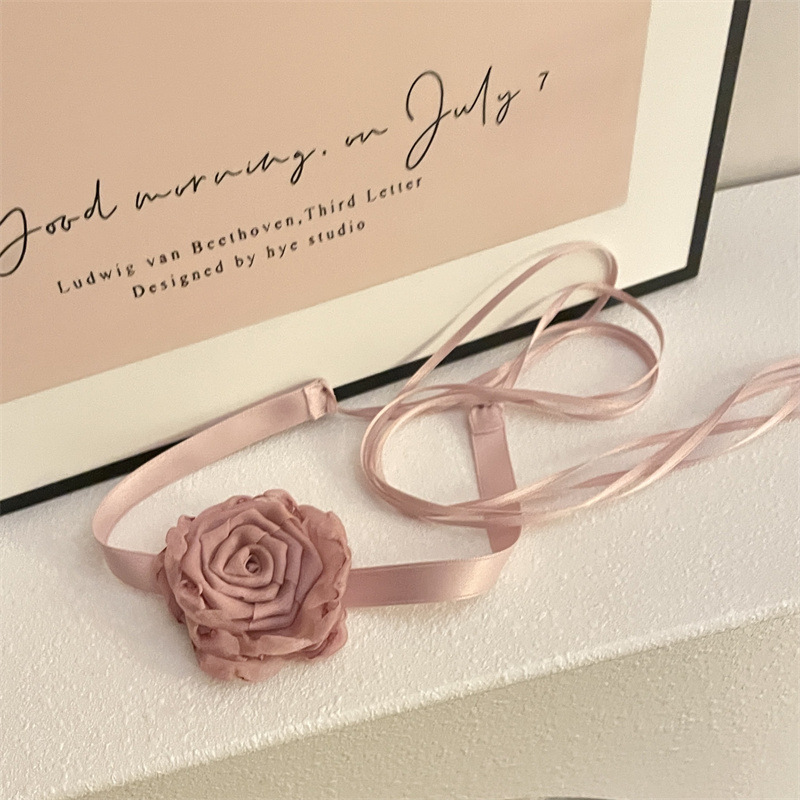 浪漫精致粉玫瑰花朵绑带丝带chocker颈链小众设计感项链女款