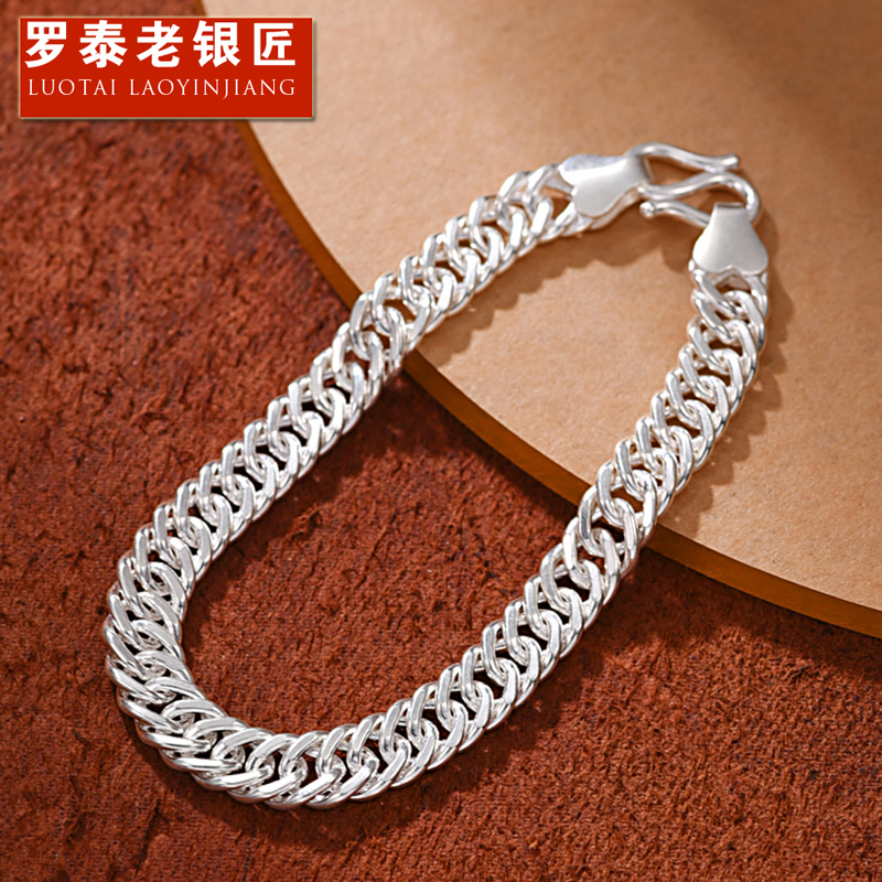 罗泰老银匠999纯银古巴手链男女士款潮高级感美式嘻哈男生手饰品