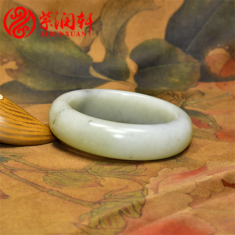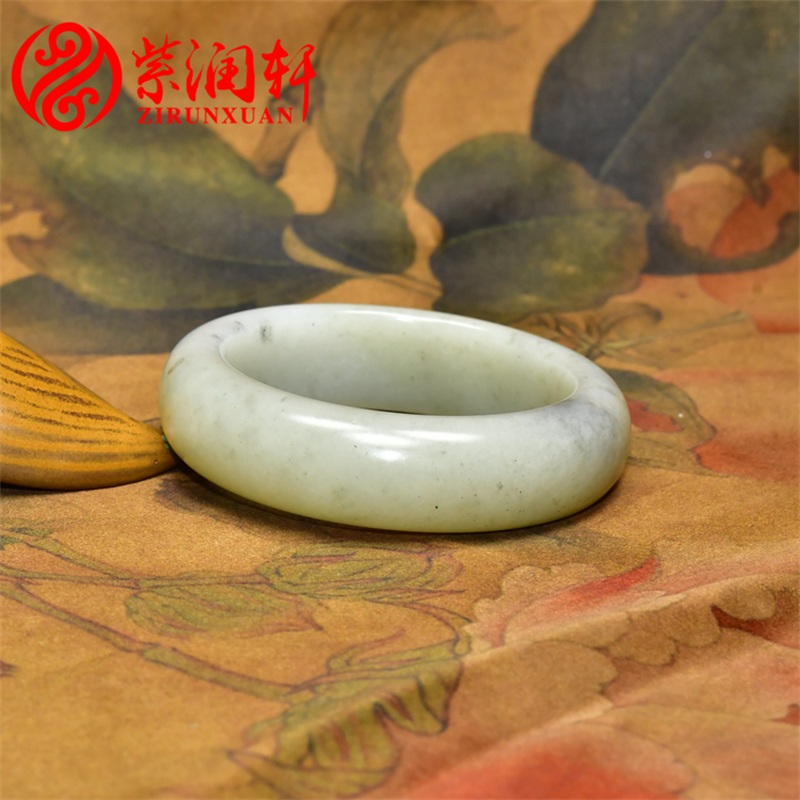 紫润轩新疆和田玉青白青花籽料手镯留皮肥厚镯58 7MM天然传家级