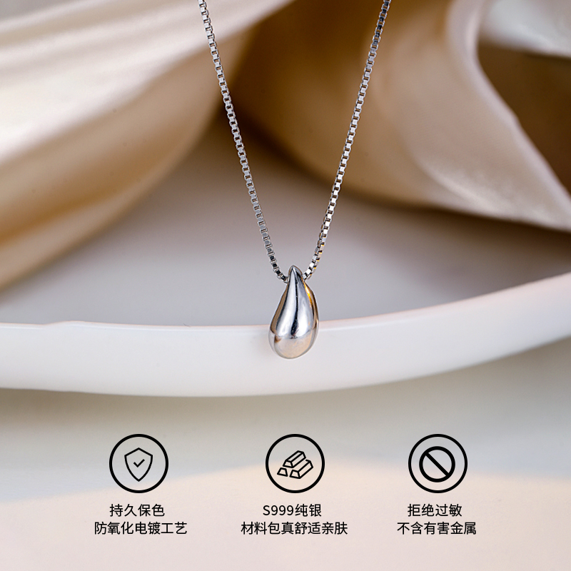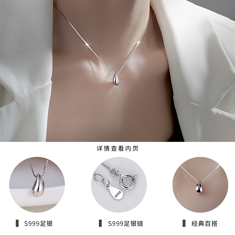 Z小姐999纯银水滴吊坠项链2024新款爆款气质轻奢小众极简锁骨链女