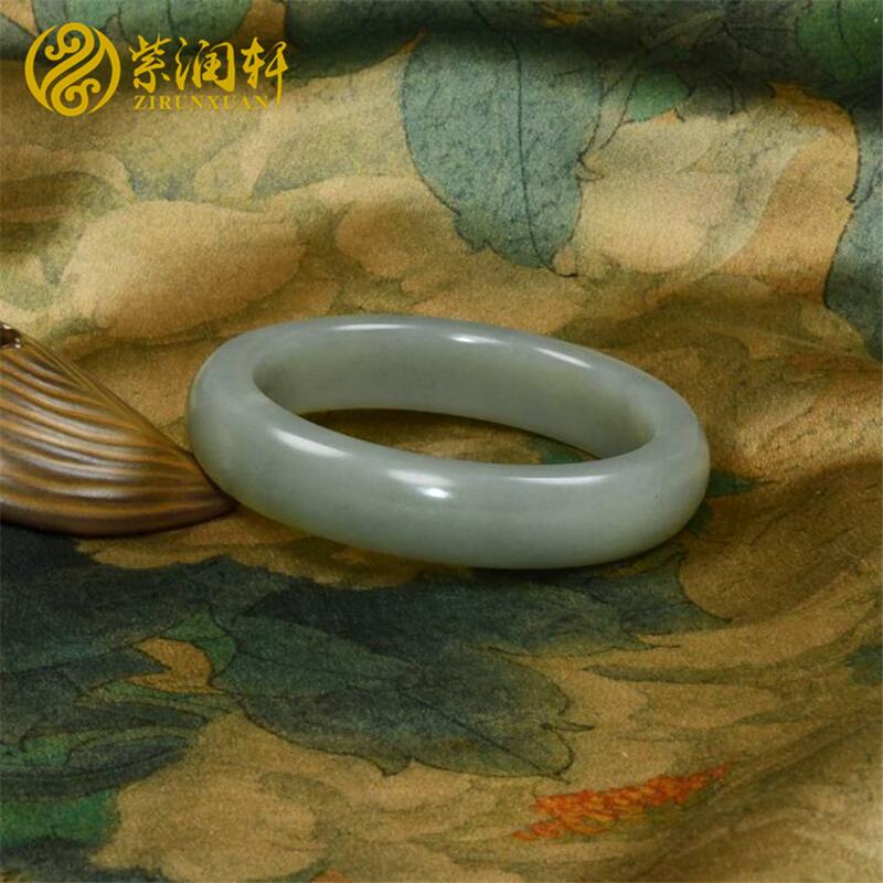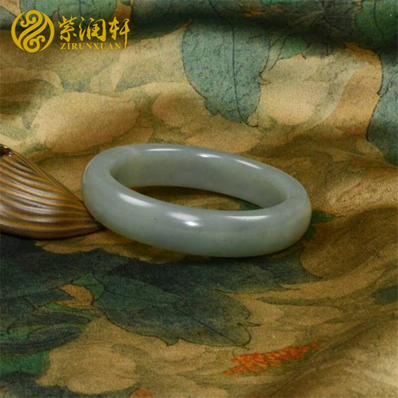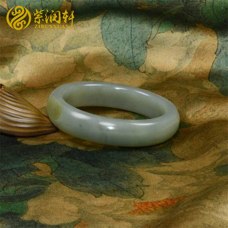 紫润轩新疆和田玉籽料手镯青白玉留皮籽镯58MM中条肥厚女神款