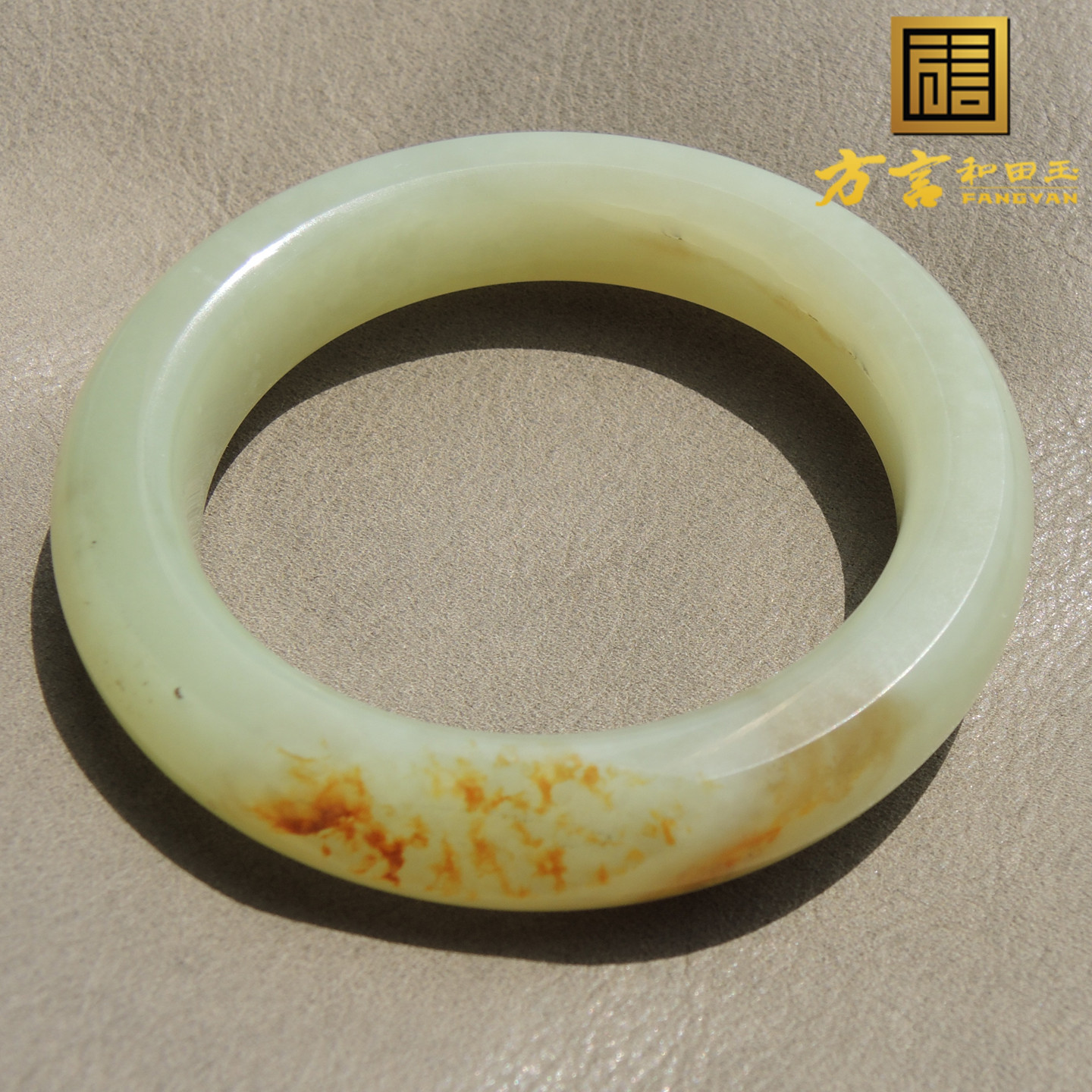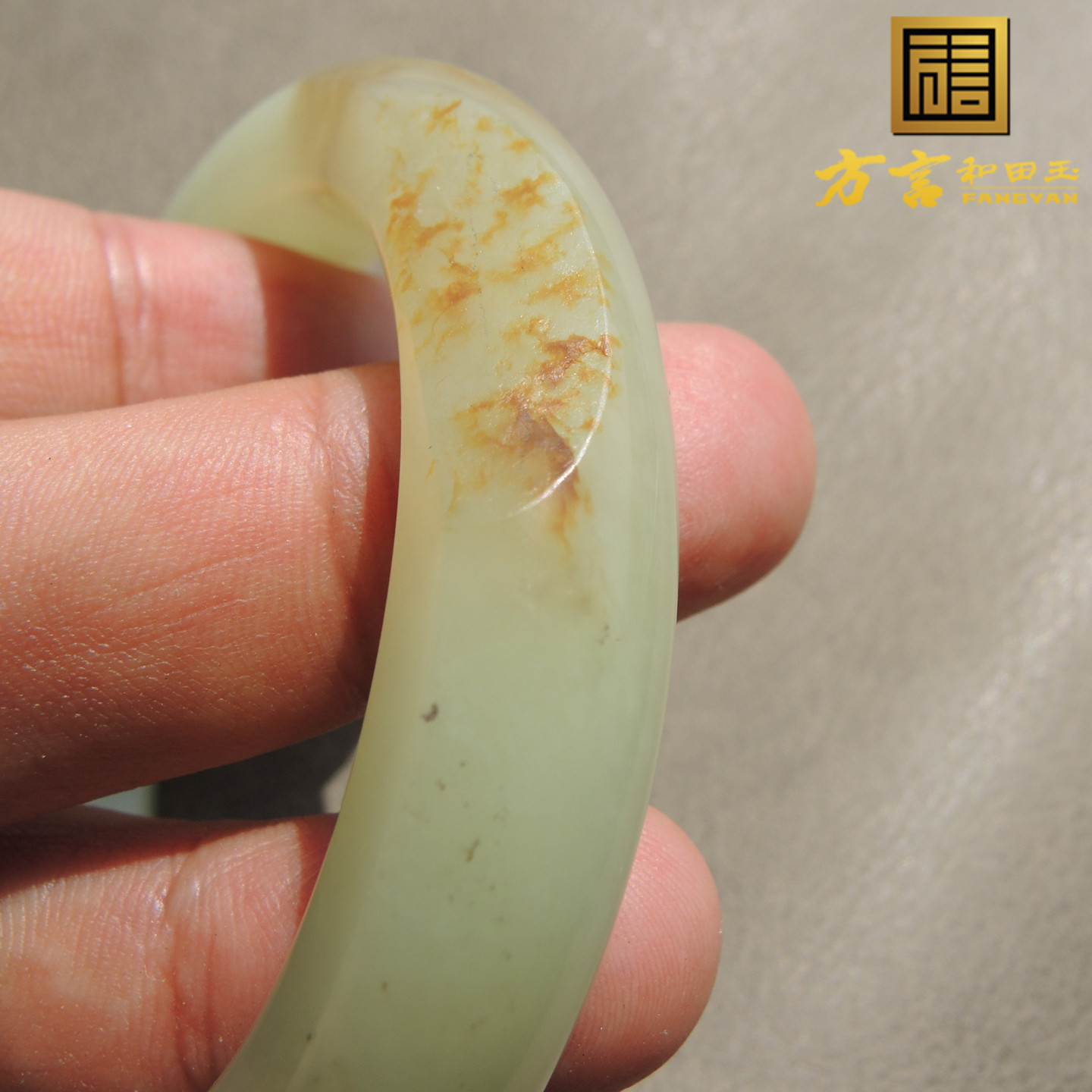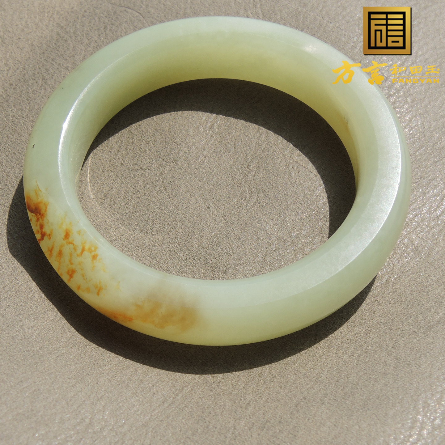 方言品牌巨漏珍稀黄色名品红皮鸡油黄玉籽料三色正装钢板手镯子R