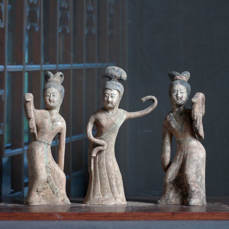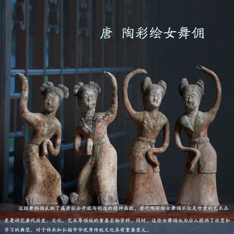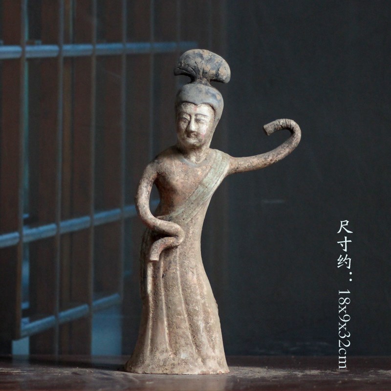 唐代陶俑侍女摆件乐器俑跳舞y甩袖俑古典装饰物古玩仿古老货收藏
