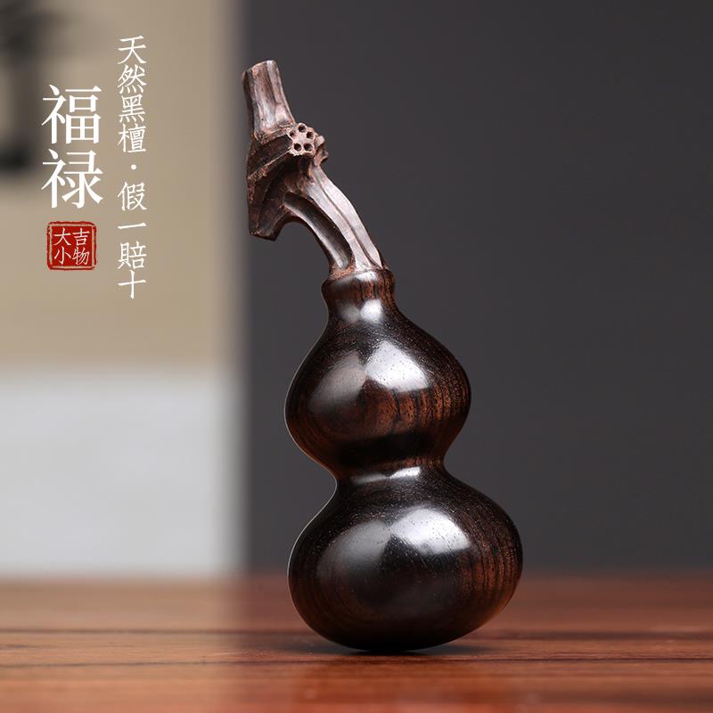 黑檀木葫芦摆件文玩手工龙年吉祥物生肖龙头葫芦手把件小挂件福禄