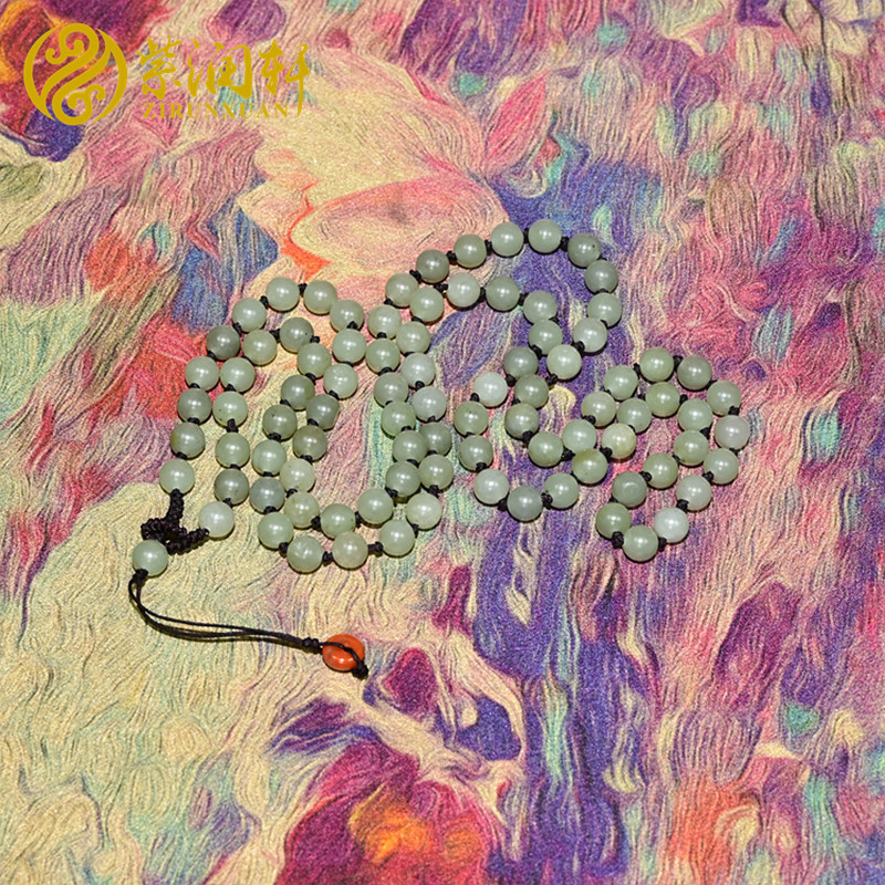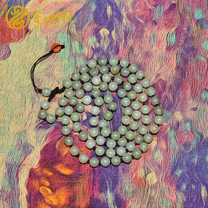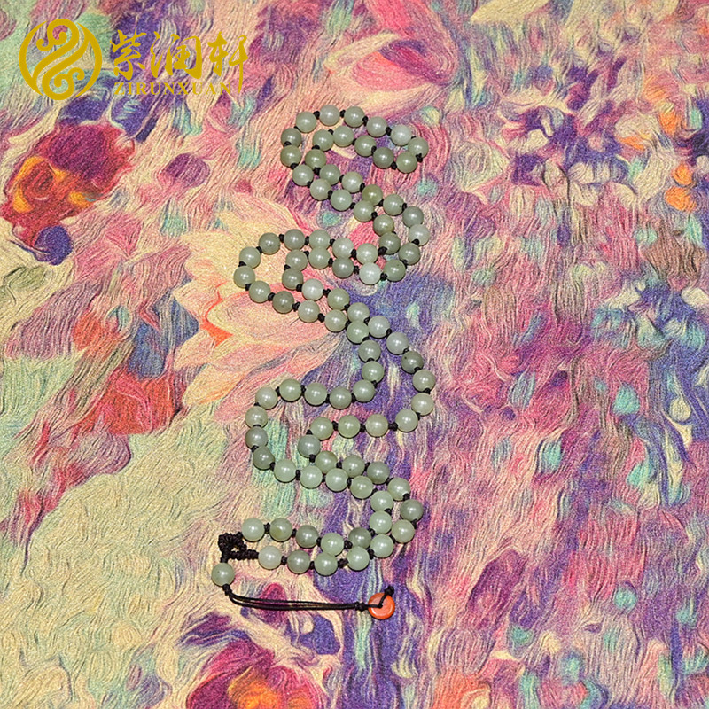 已结缘新疆和田玉项链青白玉籽料手串6MM多圈手链圆珠黑皮收藏级