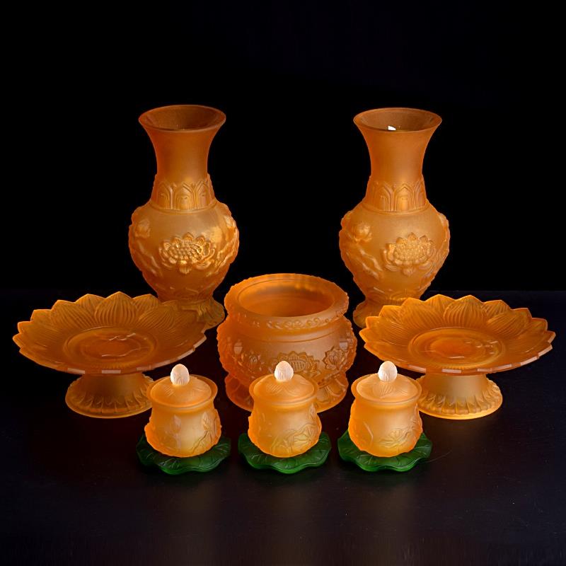 佛具佛堂供奉佛前摆件仿琉璃香炉果盘供盘圣水杯供杯花瓶室内复古