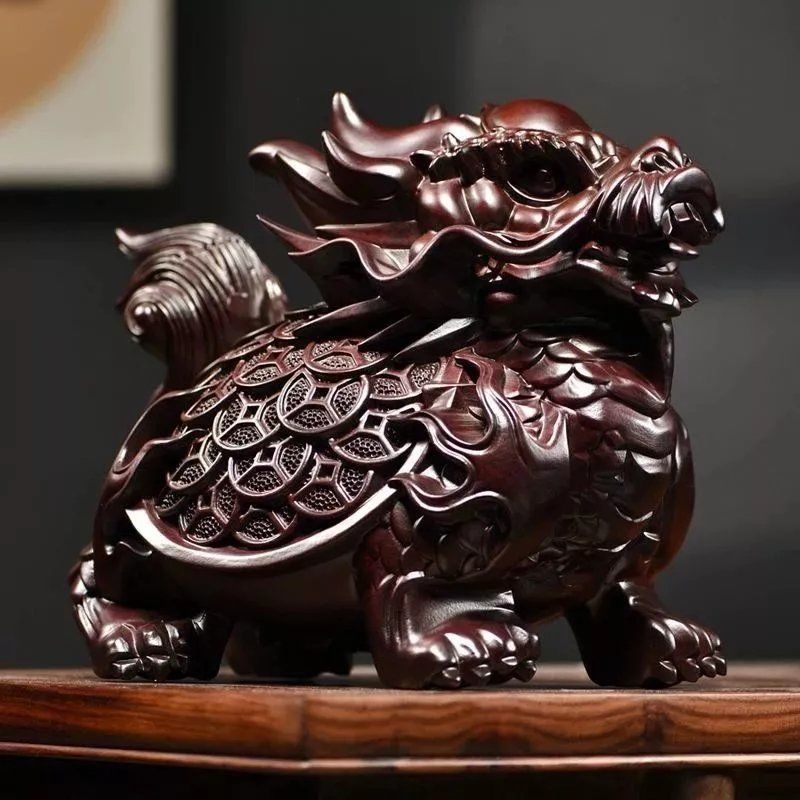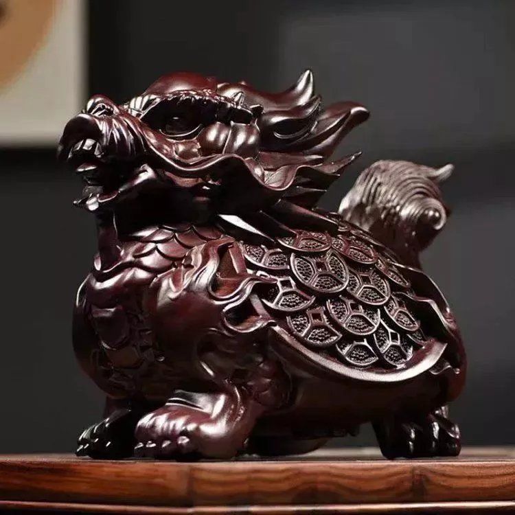 花梨木雕龙龟摆件红木雕刻工艺品实木龙头龟玄武家居办公装饰摆设