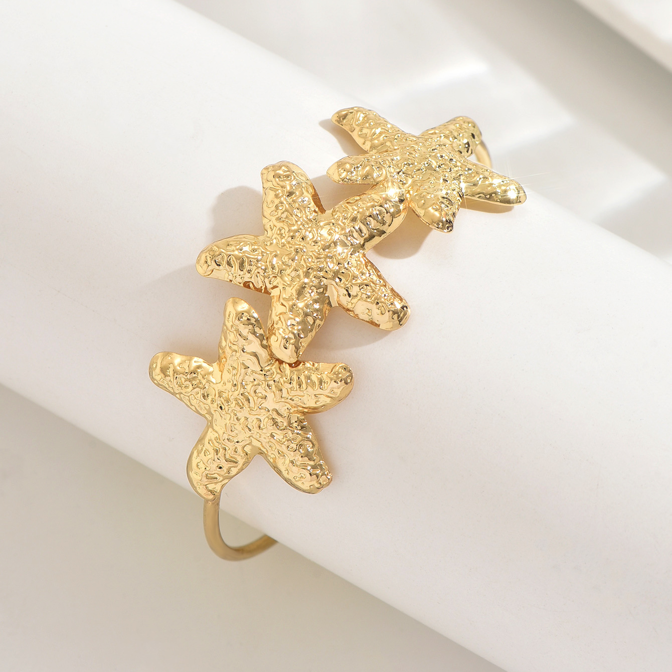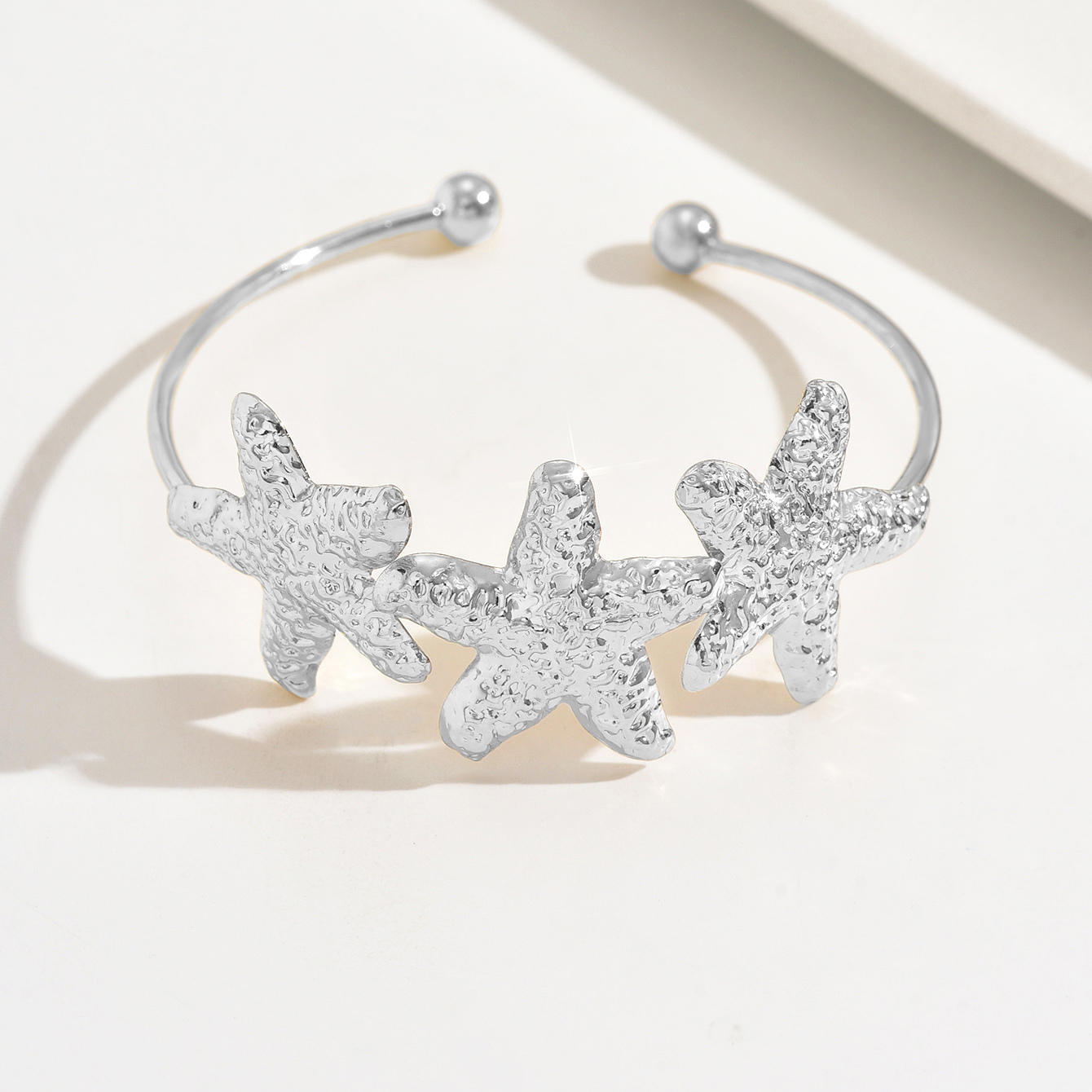 金属时尚海洋系列连环海星手镯开口可调节女士度假沙滩个性小众