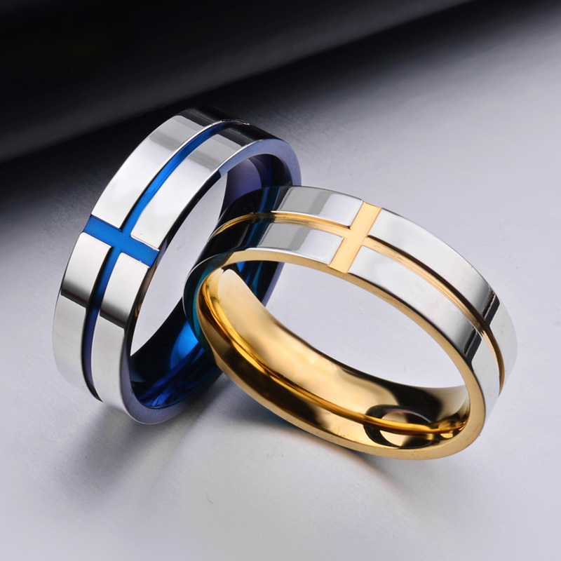 泰爱你时尚蓝色十字戒指潮男钛钢指环个性霸气食指戒子饰品