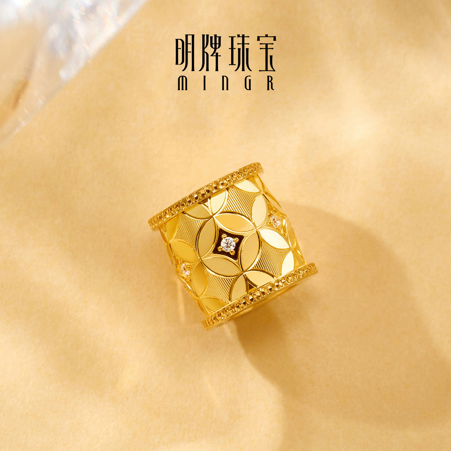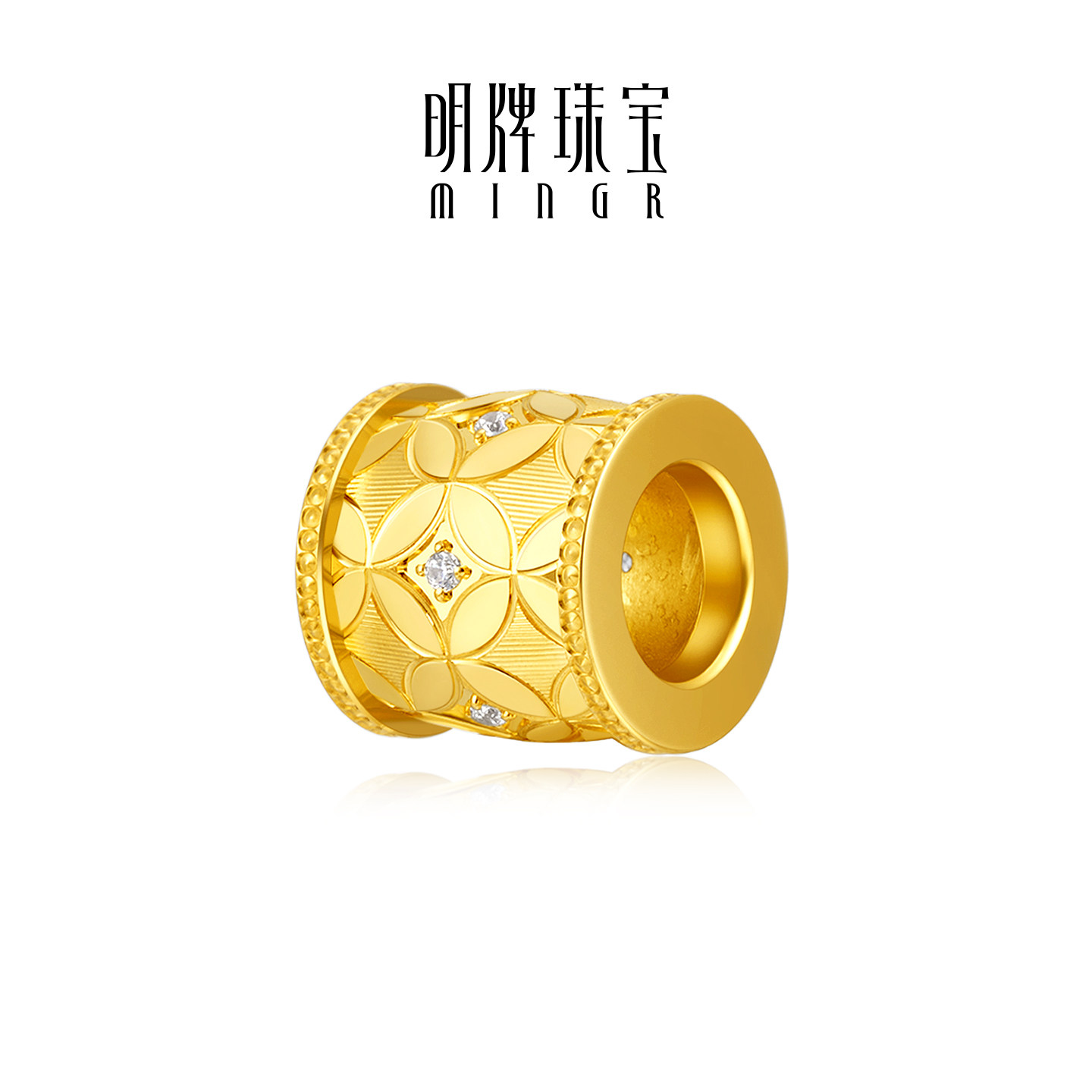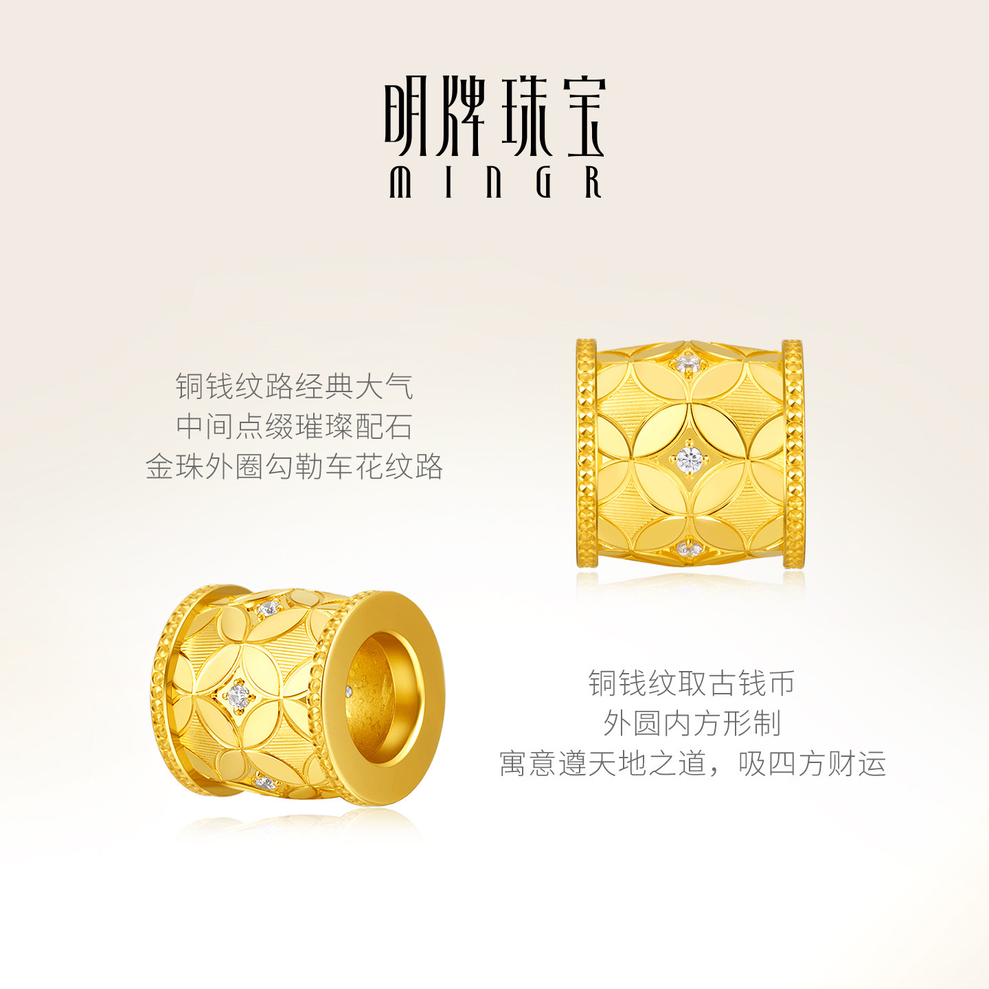 明牌珠宝小富禄黄金转运珠 足金锆石镶嵌铜钱纹吉祥路路通AFE0041