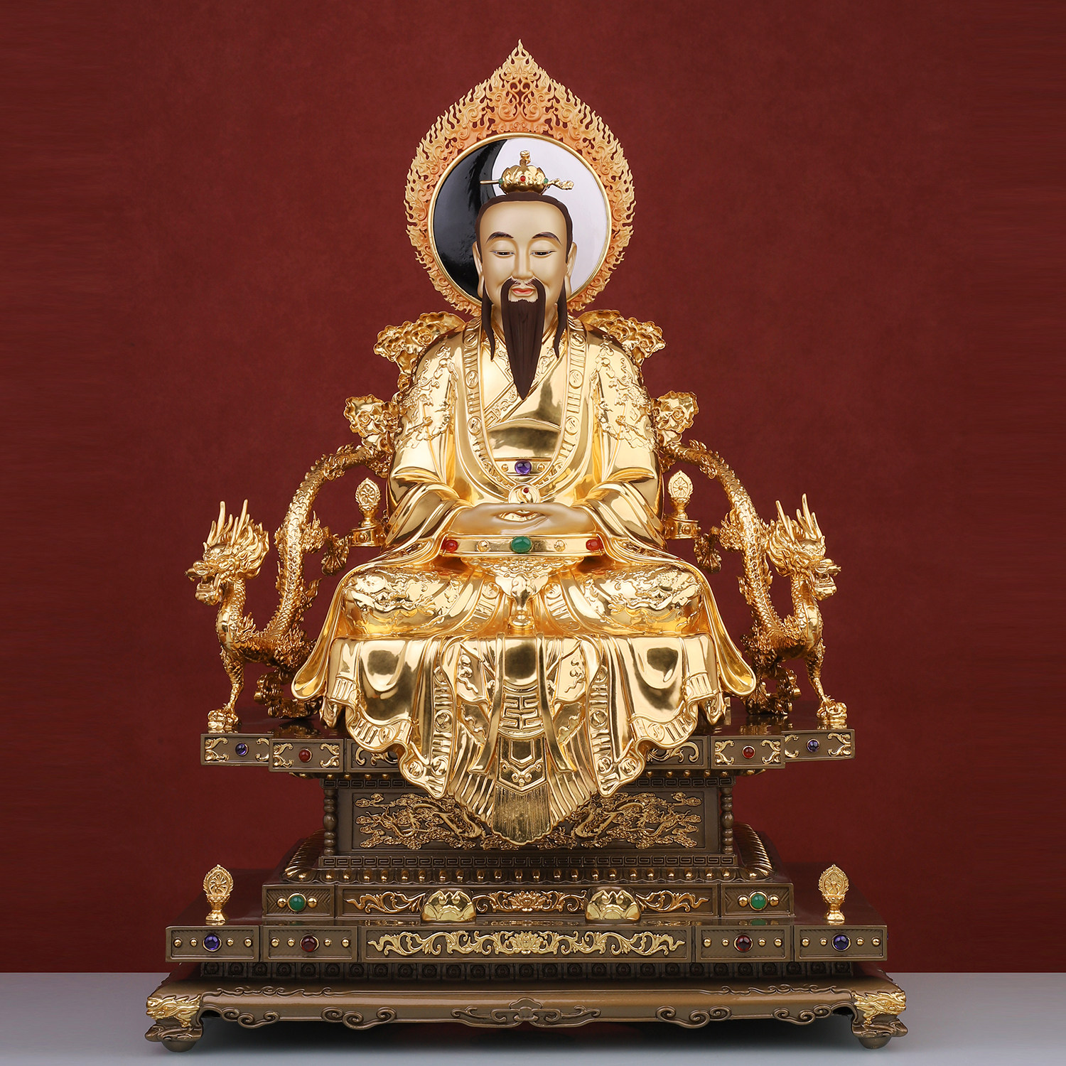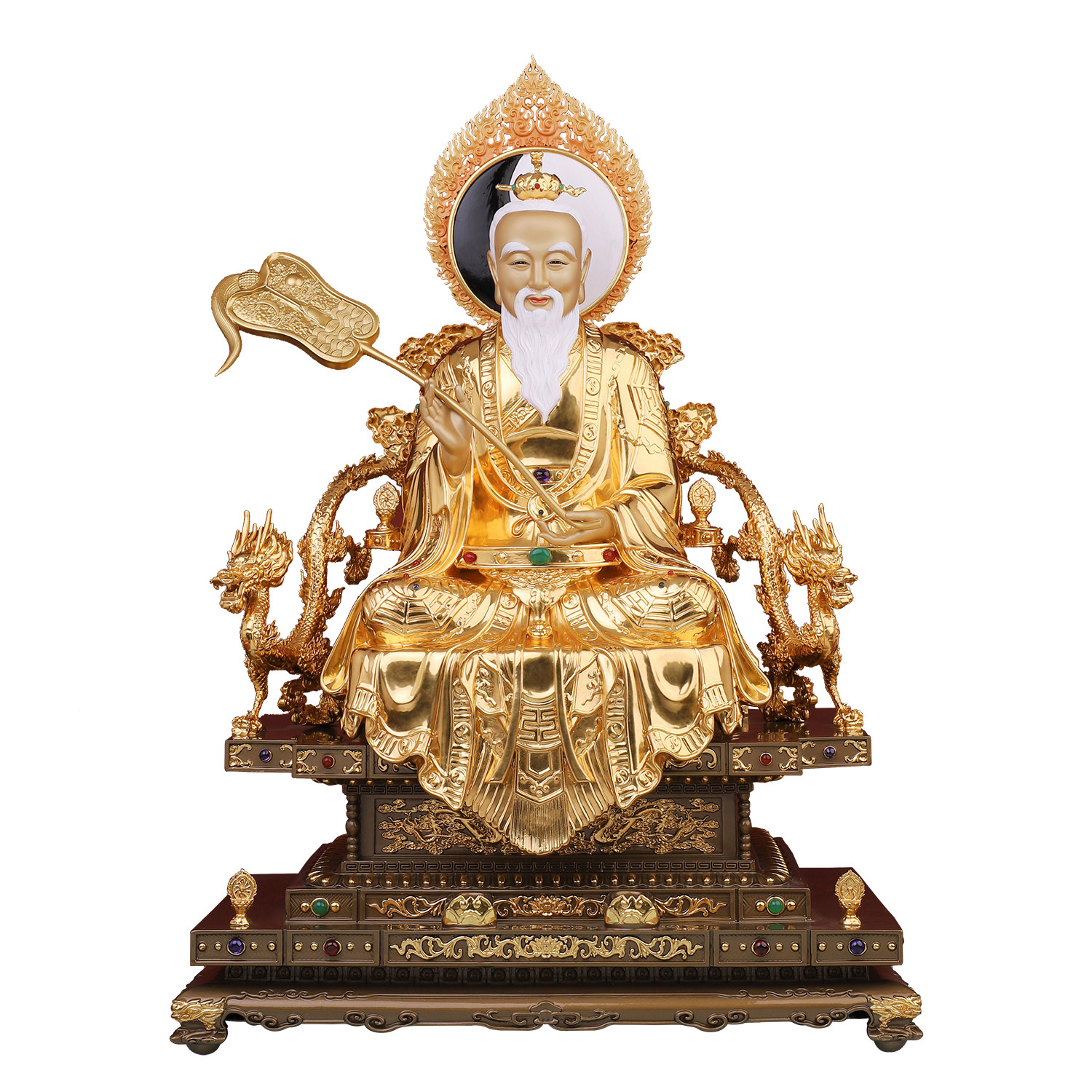 康盛三清道祖神像台湾纯铜彩绘道德元始灵宝天尊太上老君铜像摆件