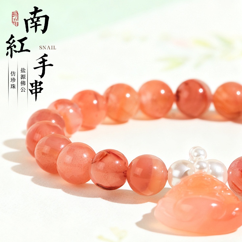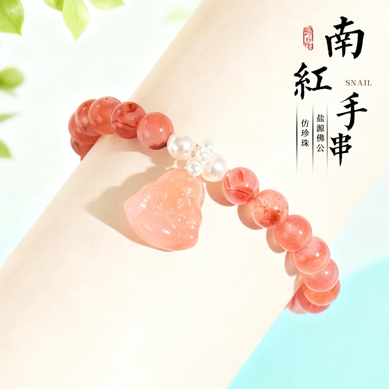 新款草莓南红玛瑙原创设计小红书同款玛瑙佛公手捻绕指柔指尖文玩