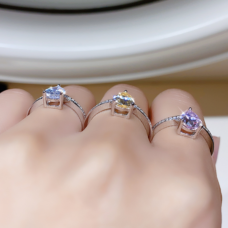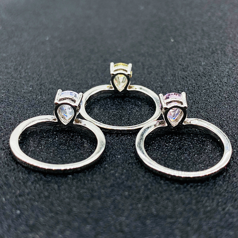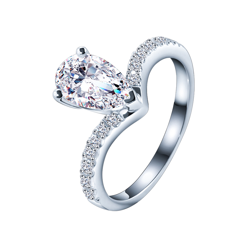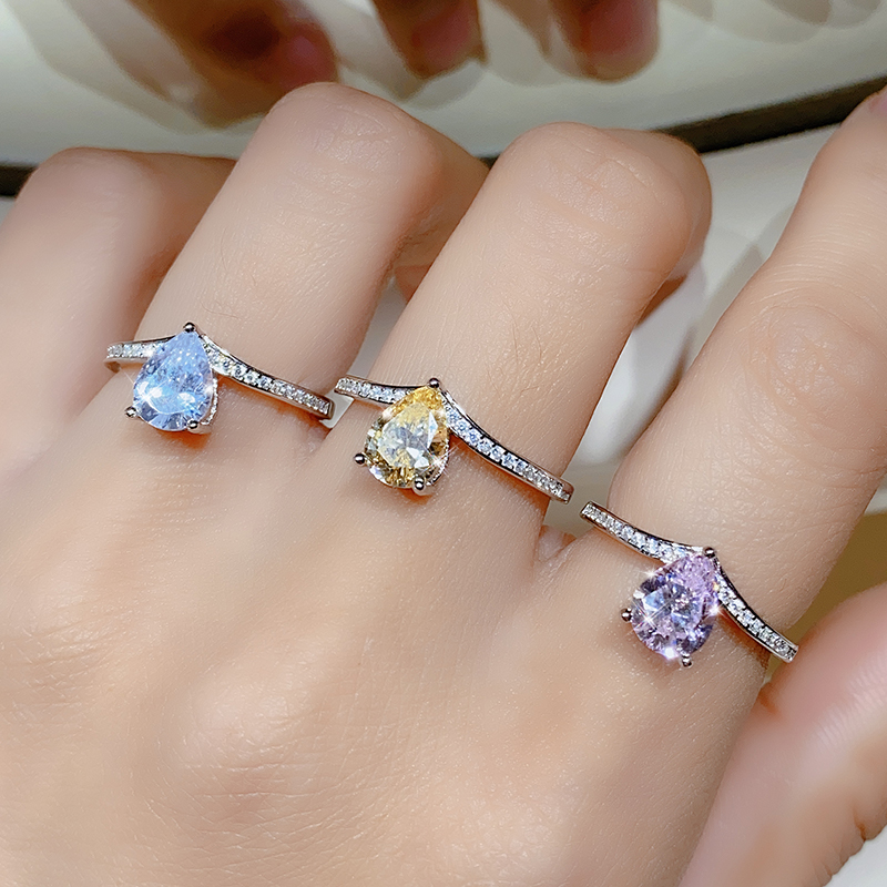 美国进口莫桑石PT950铂金四色彩钻一克拉群镶水滴三爪戒指女