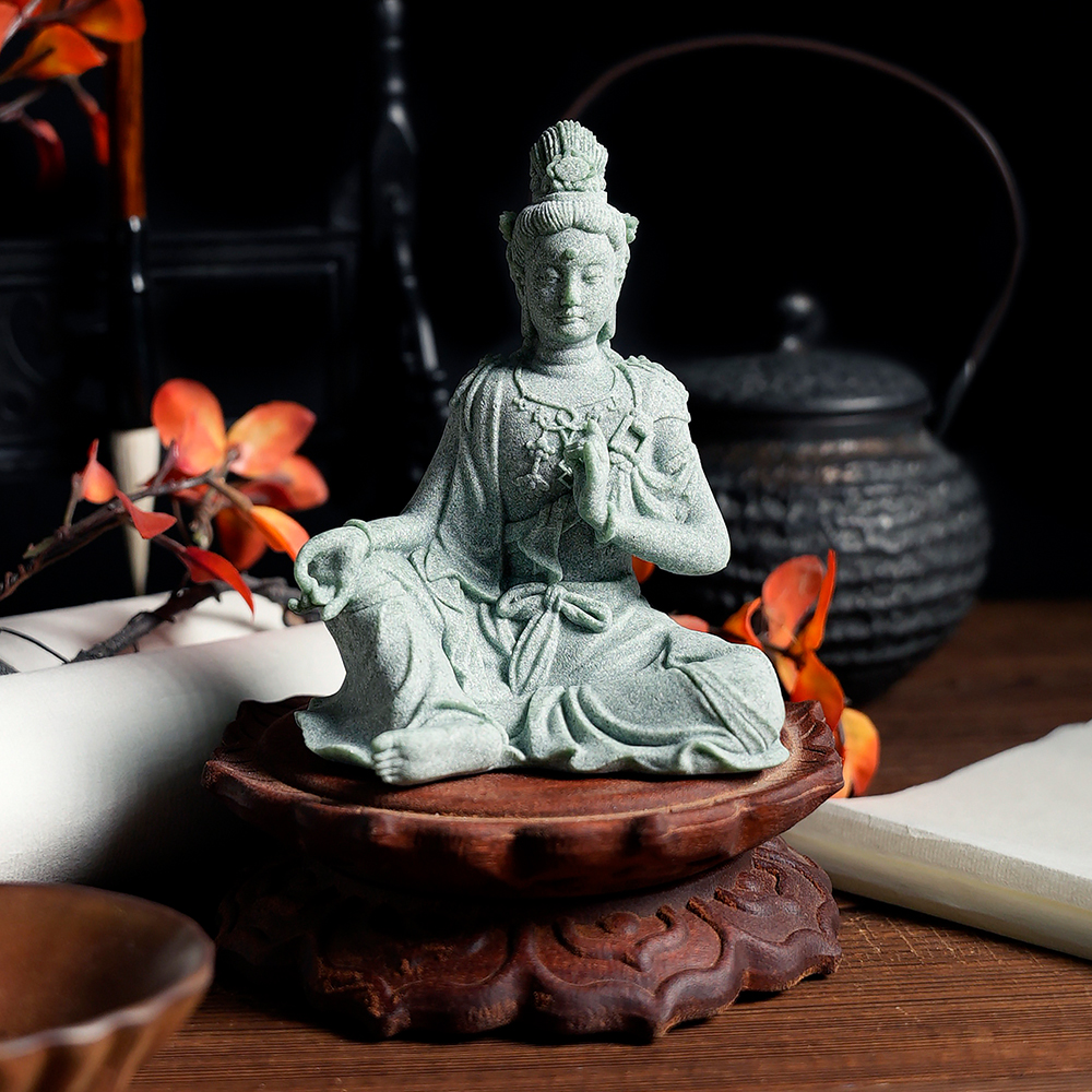 桌面中式水月观音菩萨佛像微景观鱼缸造景假山摆件茶宠香道装饰