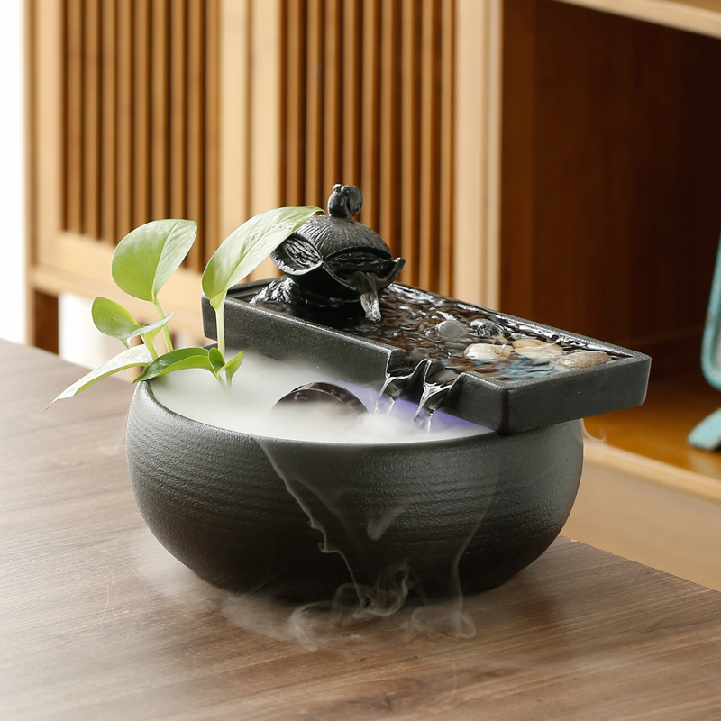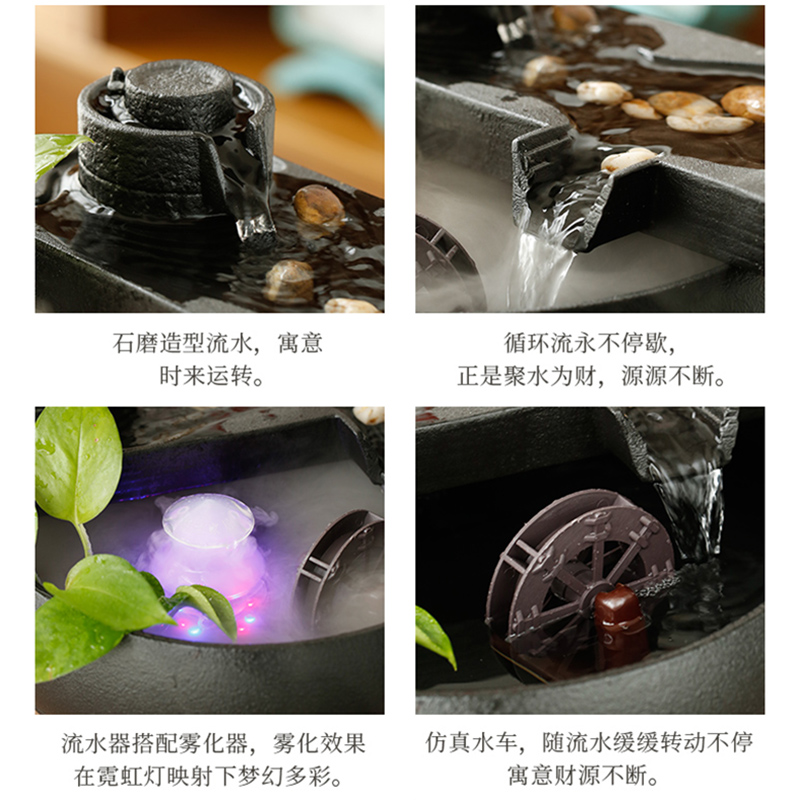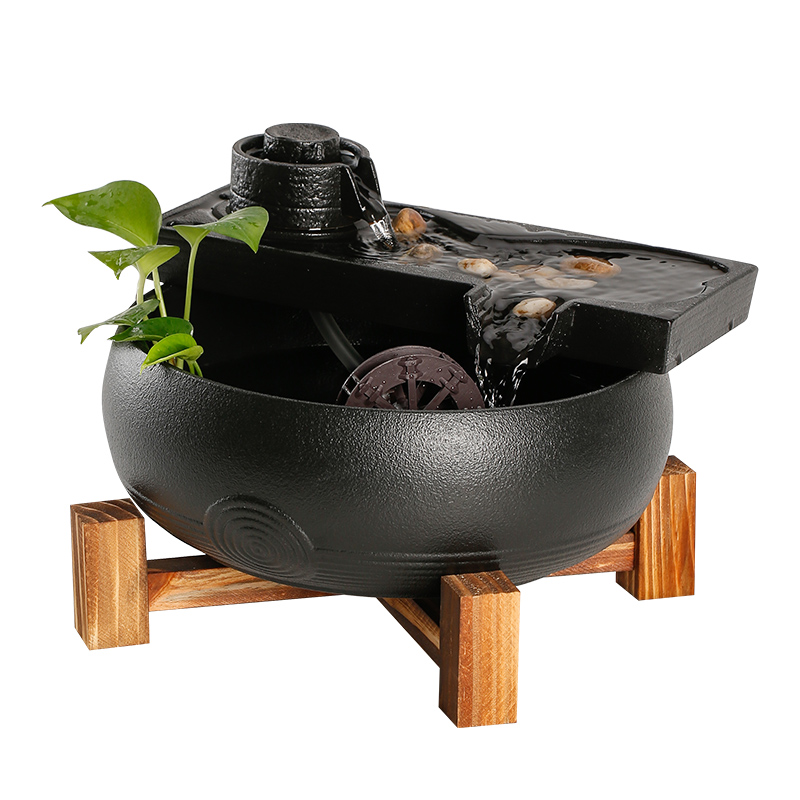 新中式招财流水循环装饰摆件茶室客厅公司办公室前台桌面开业礼品