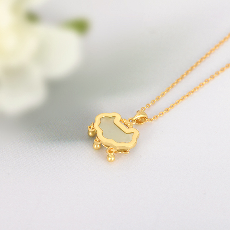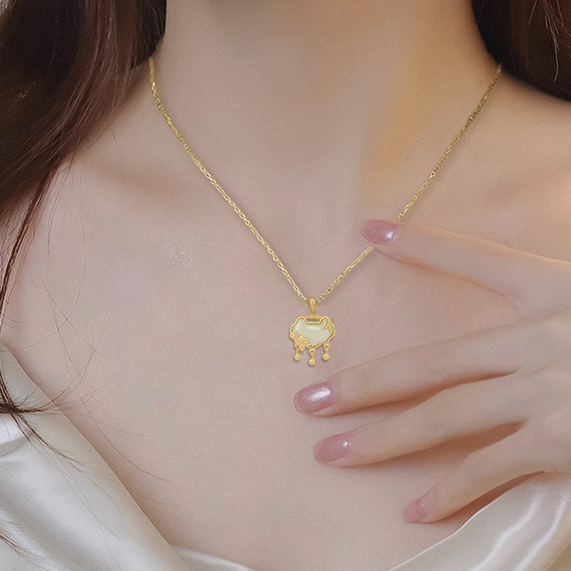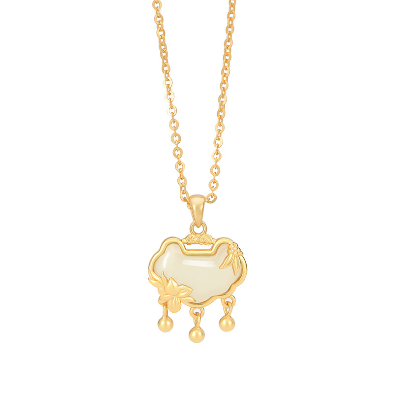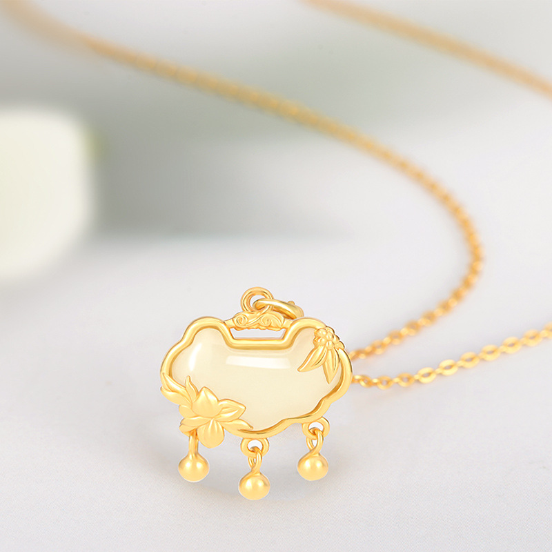 新中式牡丹如意锁项链女S925纯银天然和田玉吊坠高级感国风锁骨链