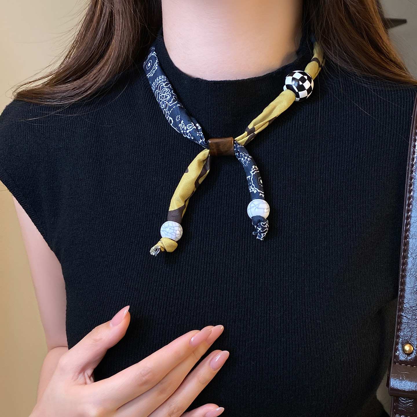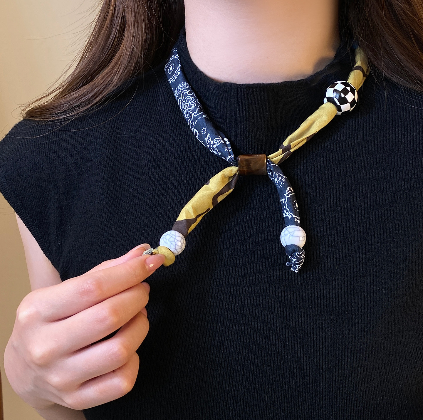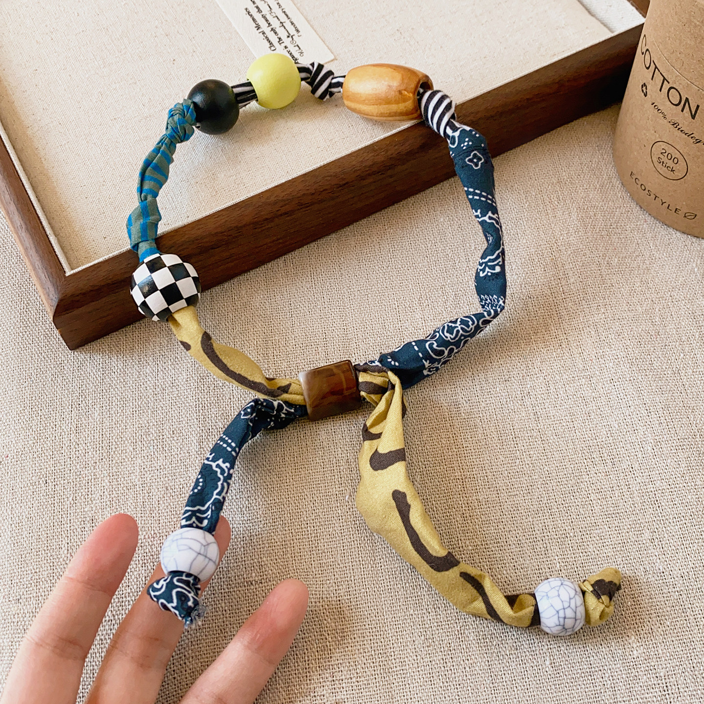 古里雅拼接布艺串珠项链高级感轻奢小众配饰女2025新款脖子配饰品