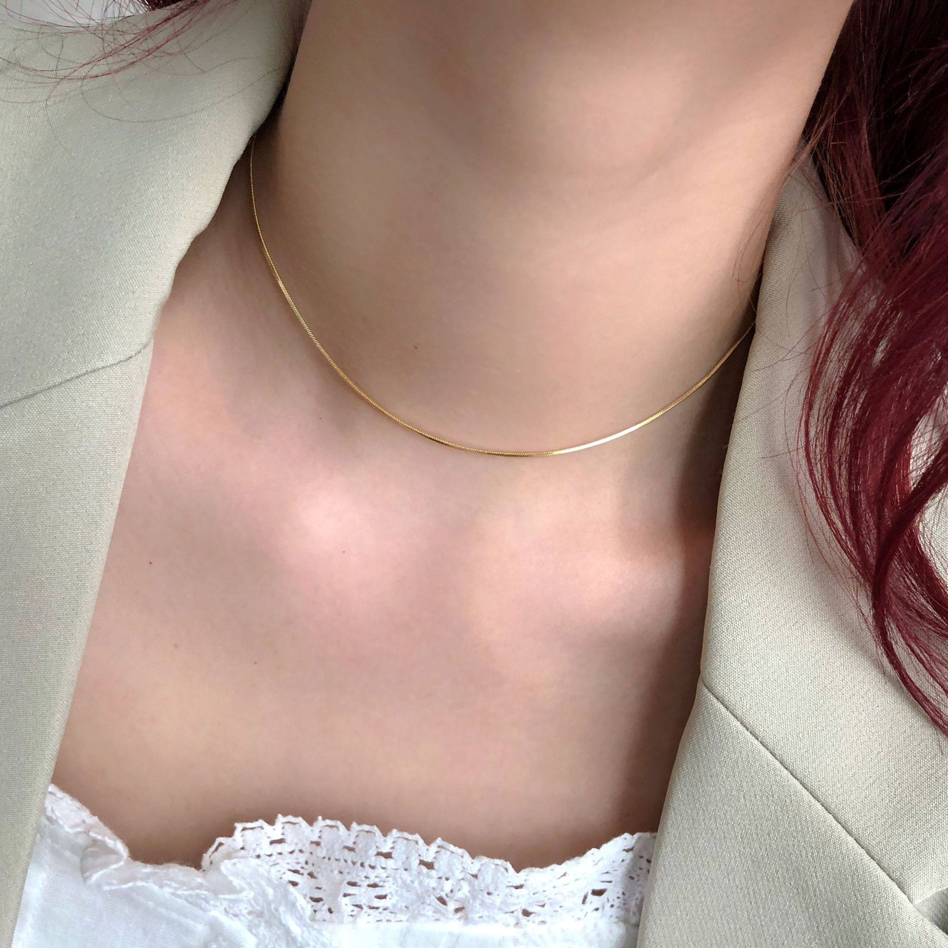 仙气冷淡风极简欧美复古叠戴纤细款chocker锁骨蛇骨链毛衣项链潮