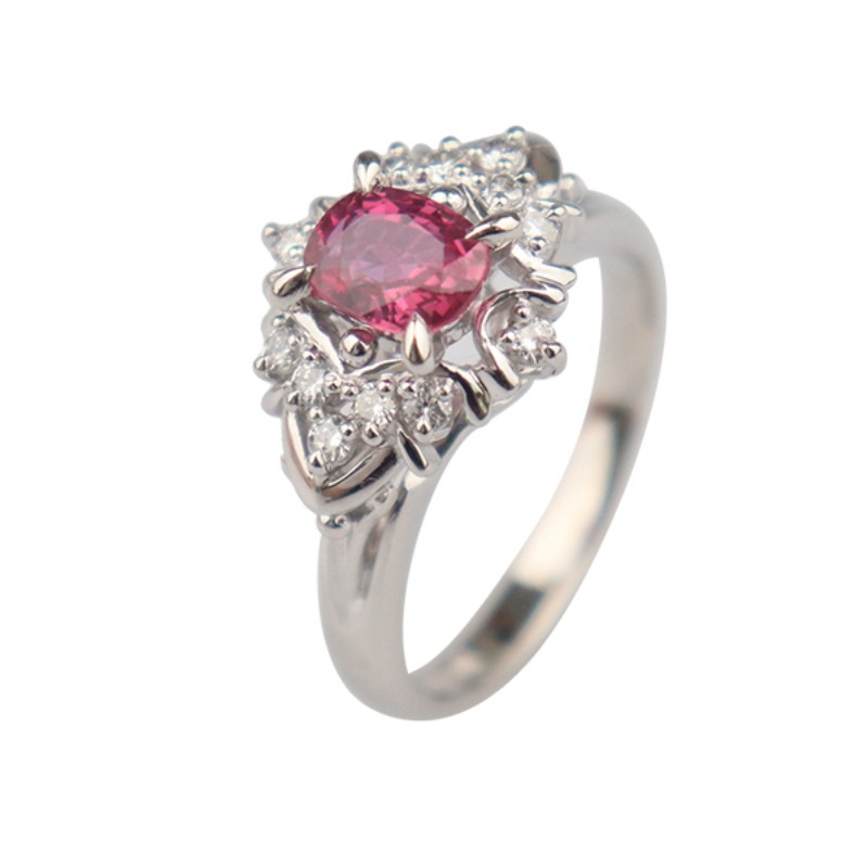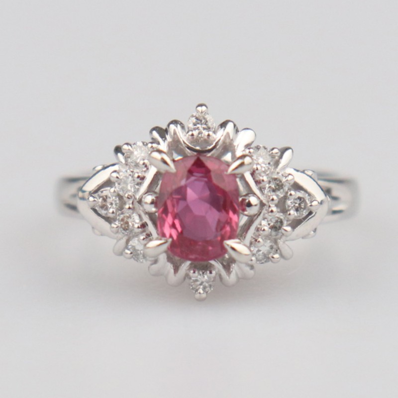 【自营】中古95新日本进口商品椭圆形切工红宝石钻石戒指铂金52号