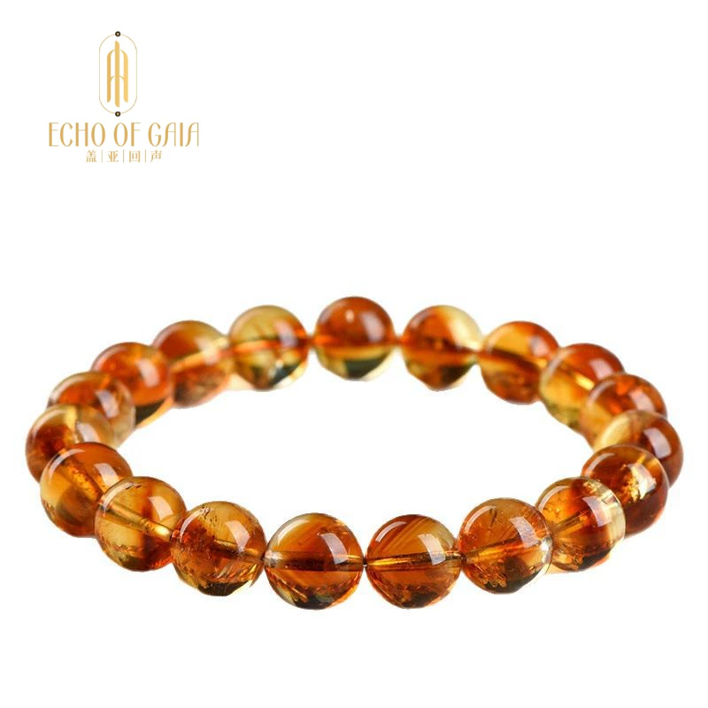 盖亚回声 男女天然黄水晶金字塔圆珠手链 转运水晶手链黄塔晶