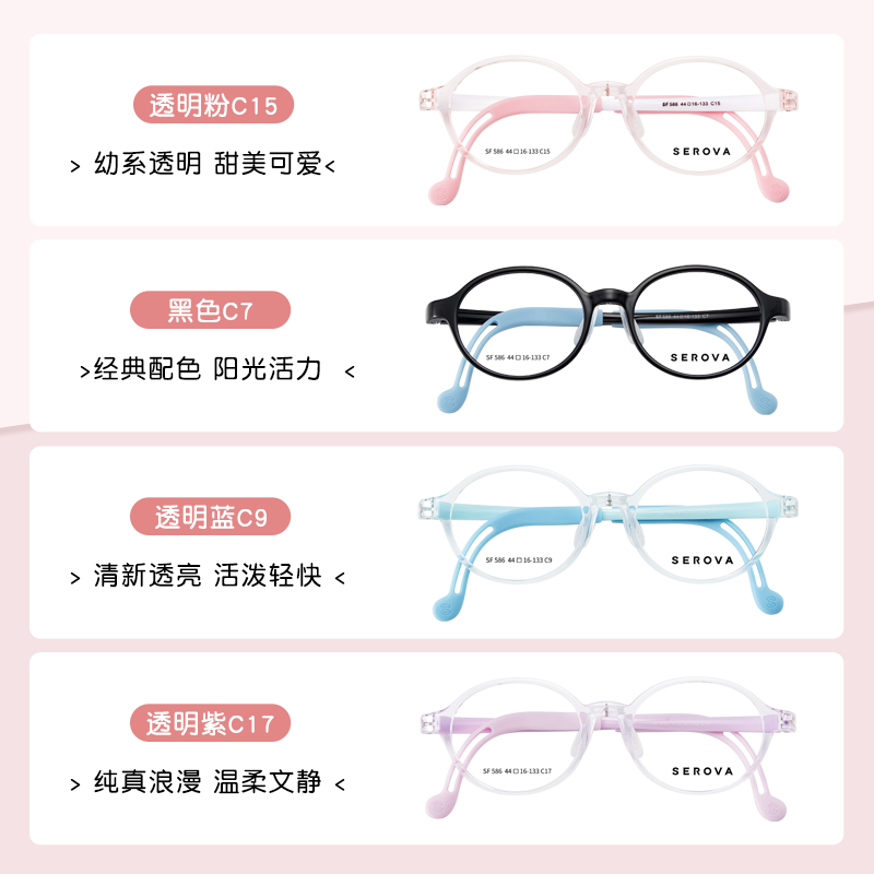 施洛华SF586儿童镜框眼镜防蓝光近视镜圆框青少年镜片专业配镜男
