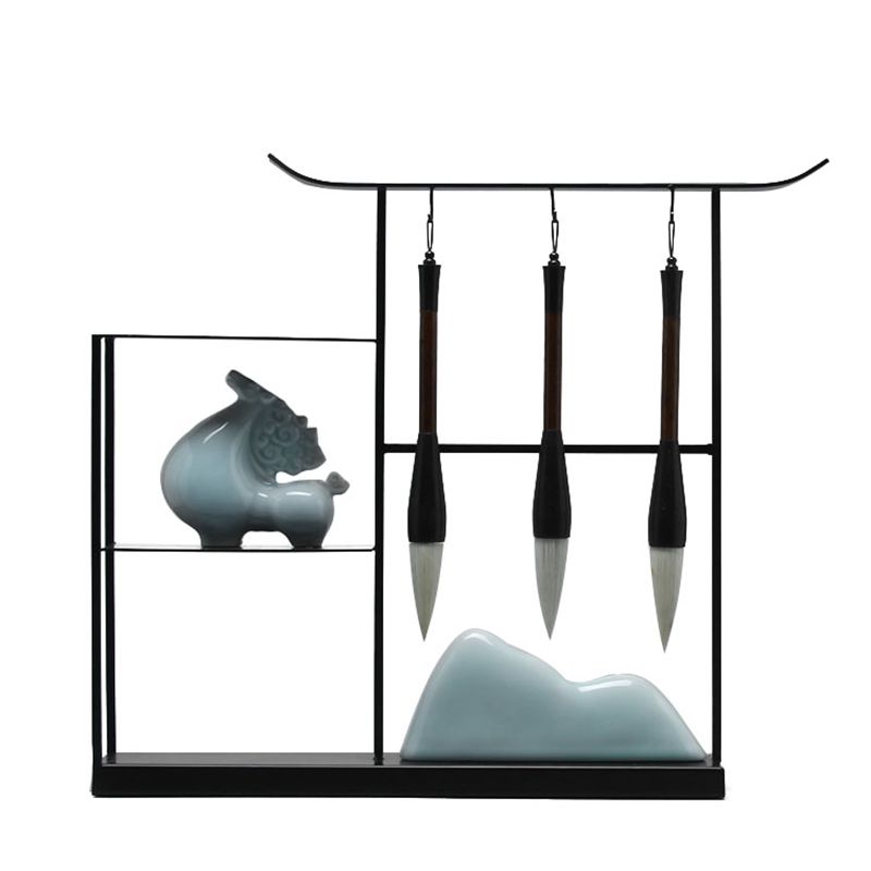 新中式毛笔架小摆件创意家居书房C书桌办公桌禅意桌面古风软装饰