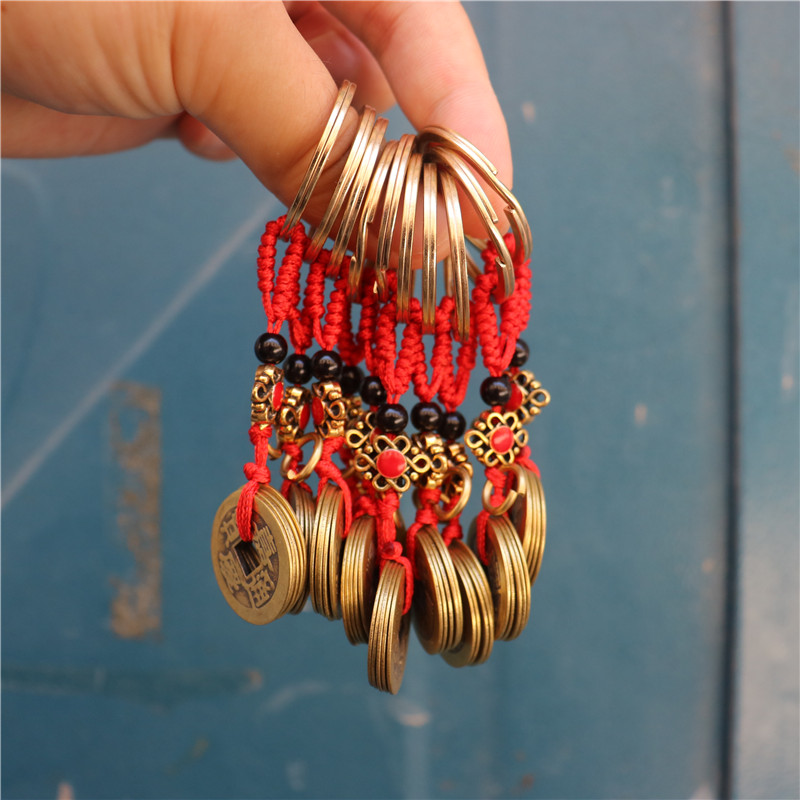 钥匙扣纯铜 五帝钱挂件随身饰品书包挂饰小挂件
