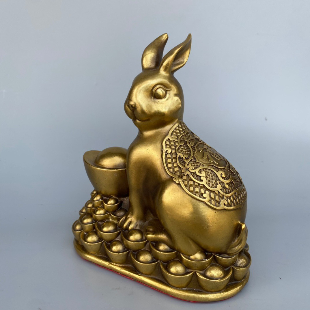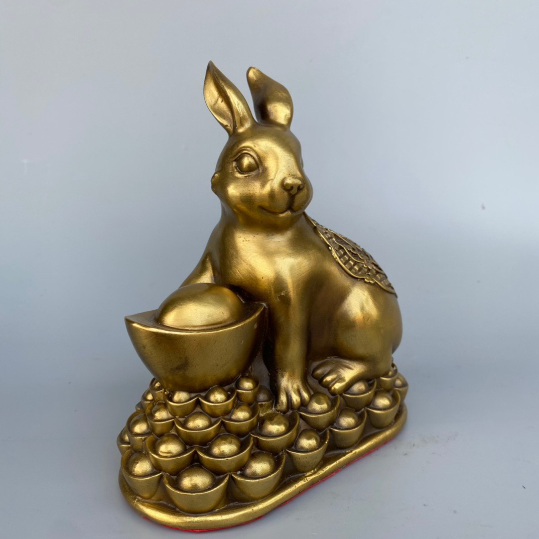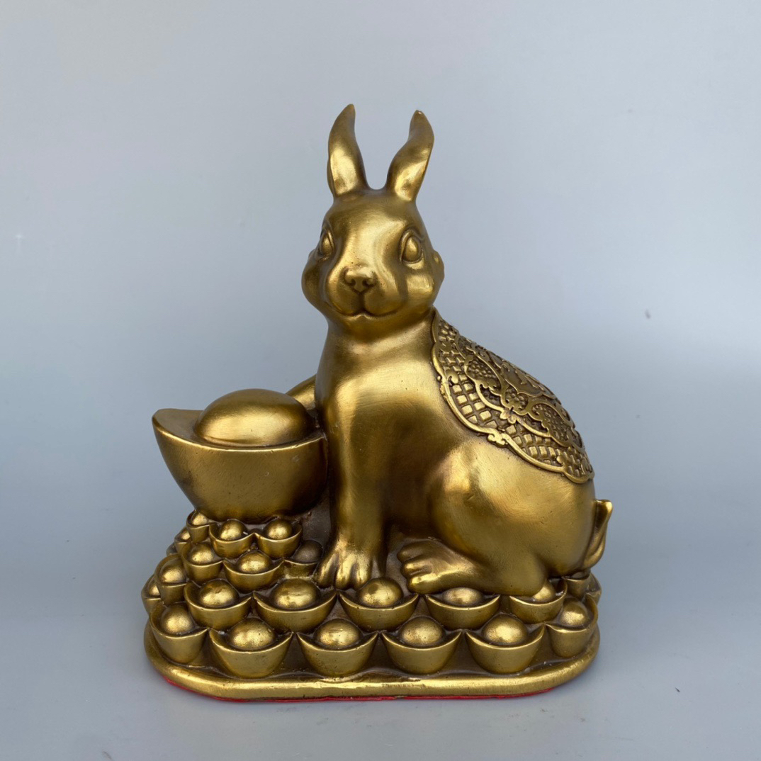 纯铜兔子摆件铜兔子聚宝盆铜兔子家居客厅办公室桌面装饰摆件