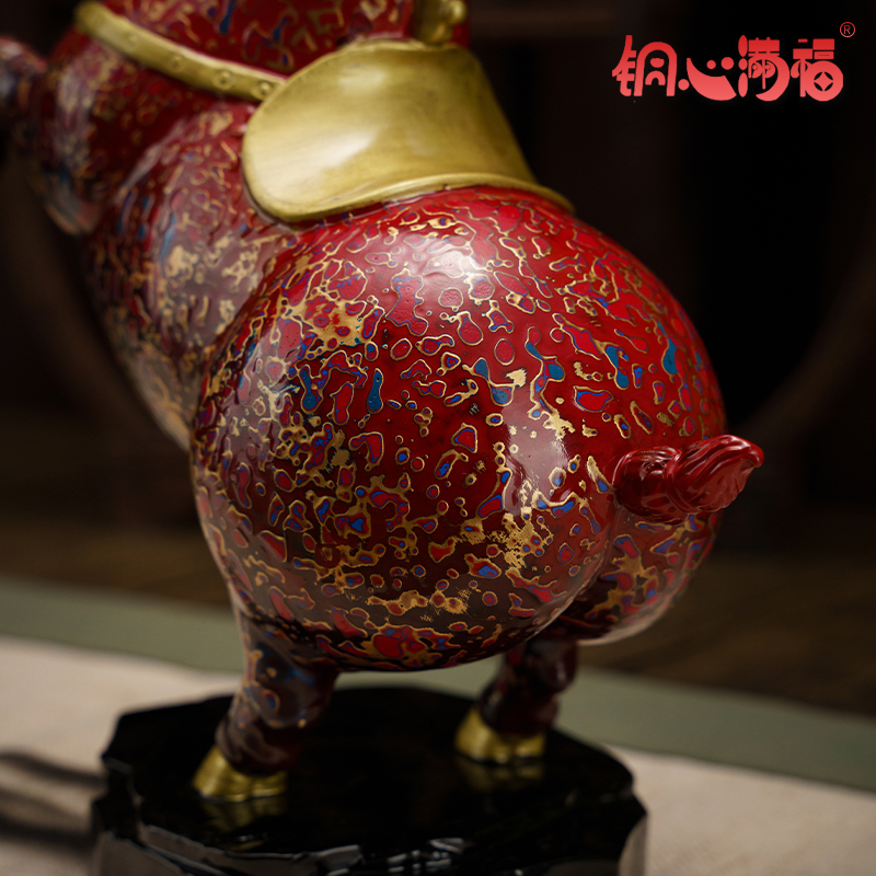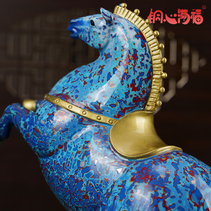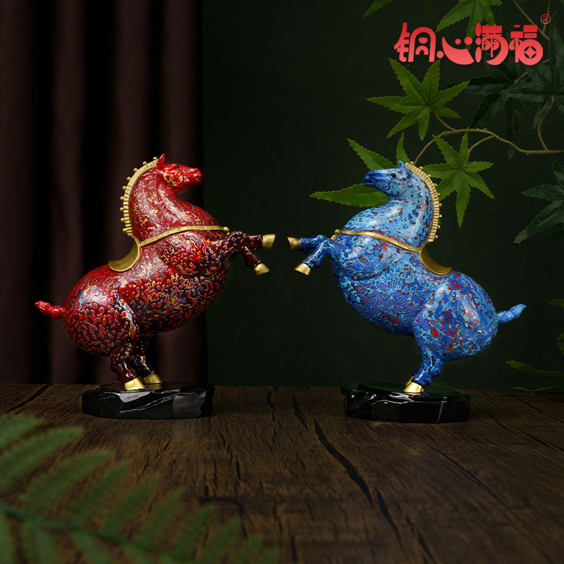 庚彩铜马《立马发财》大漆平替工艺桌面装饰品摆件办公室送礼必备