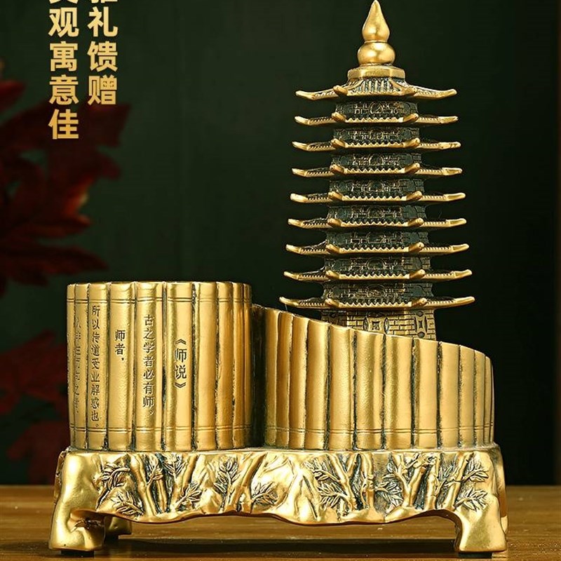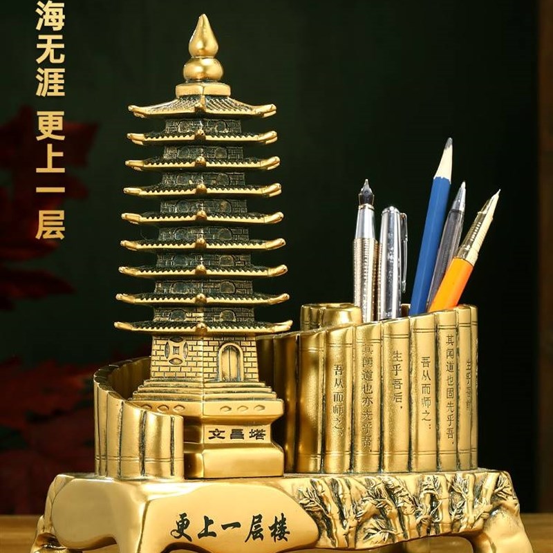 九层文昌塔笔筒摆件办公室桌面书房实R用高端装饰品文昌