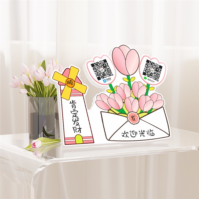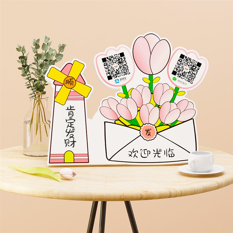 收款码付款二维码创意展示牌定制制作 收银摆台立牌打印台牌桌牌