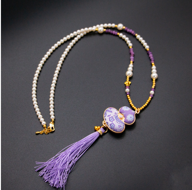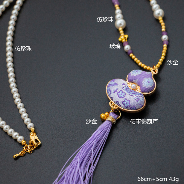 宋锦流苏串珠紫葫芦吊坠珍珠项链女流苏毛衣链新中式配饰挂件旗袍
