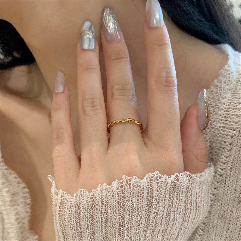 大码戒指女胖MM麻花扭纹简约冷淡风复古J潮个性大圈口胖手食指指