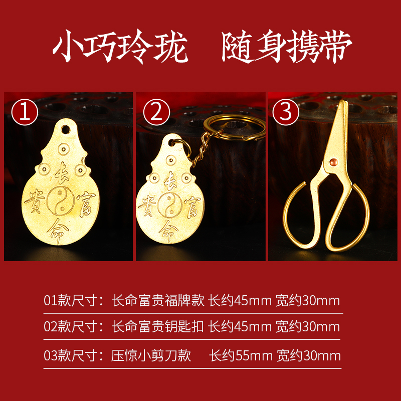 纯铜小剪刀宝宝压惊护身婴儿吊坠阿弥陀佛护身符实心随身剪子挂件