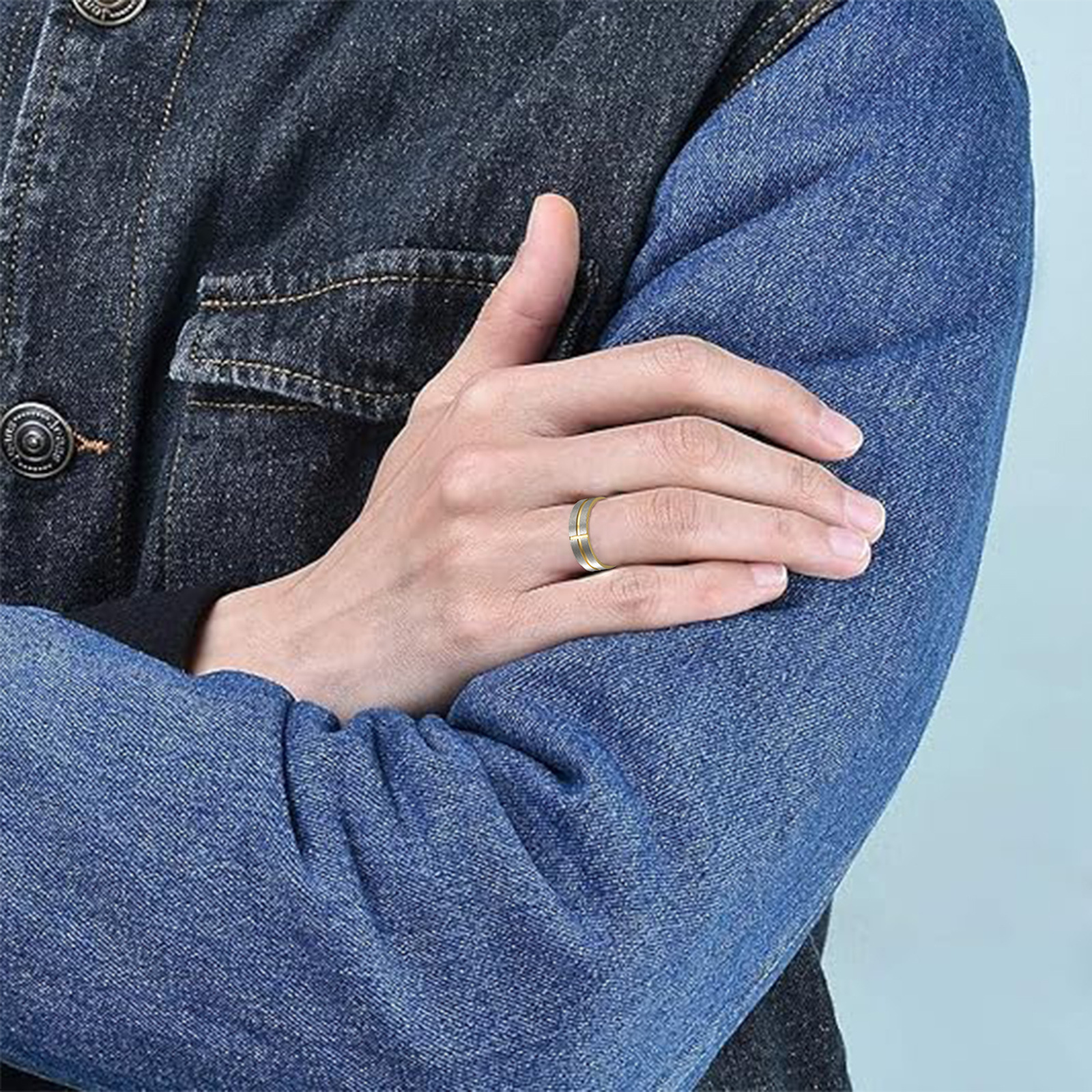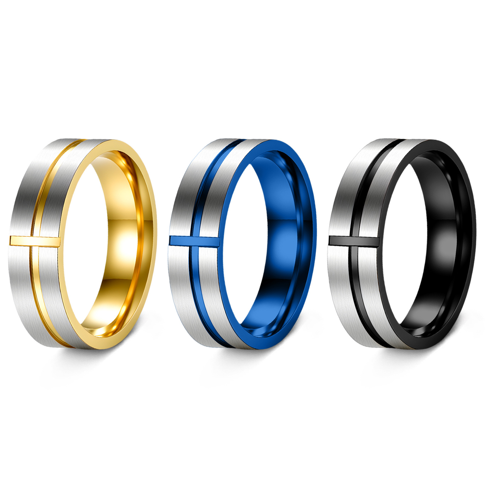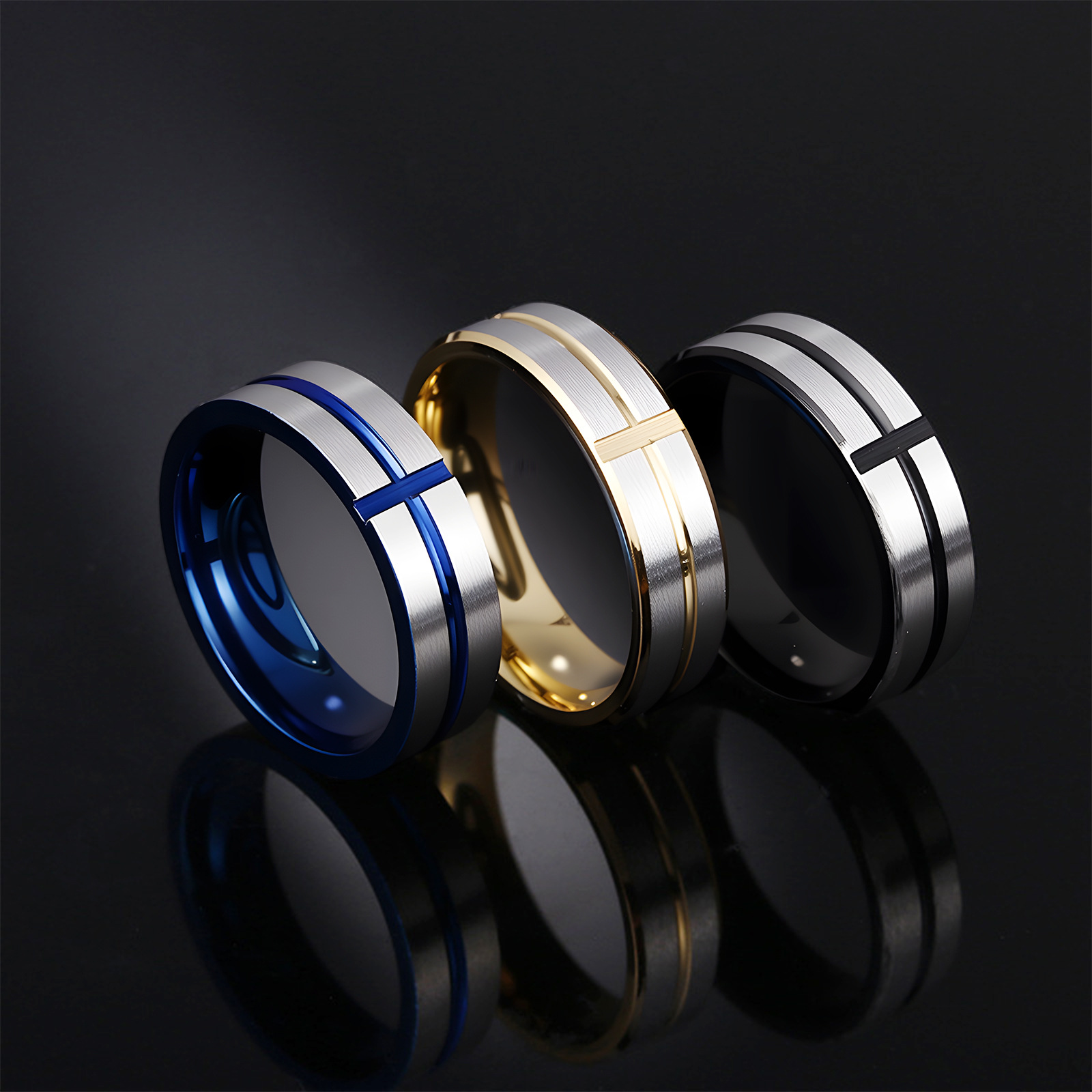 男士欧美时尚手饰蓝色十字架戒指小饰品钛钢磨砂饰品简约潮人指环