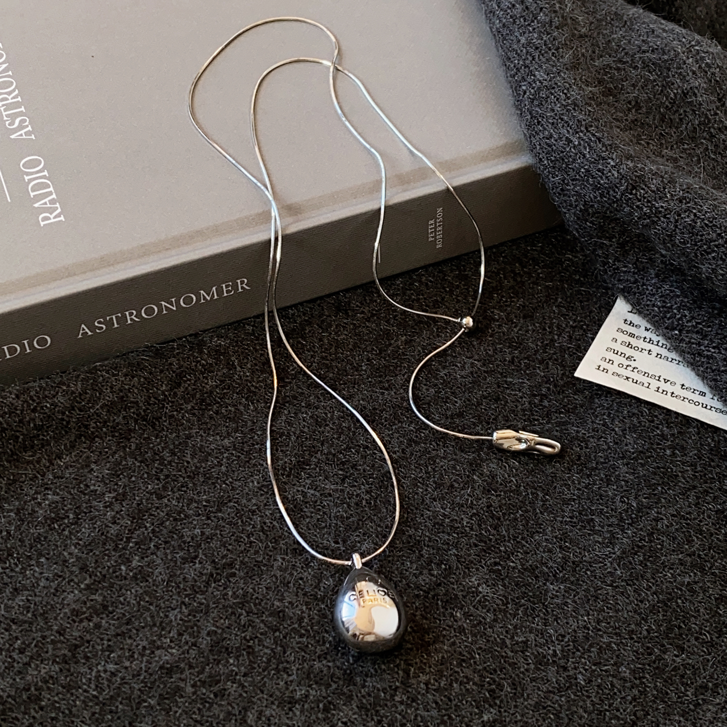 银色水滴吊坠可调节长毛衣项链女2025新款秋冬配饰大气高档高级感