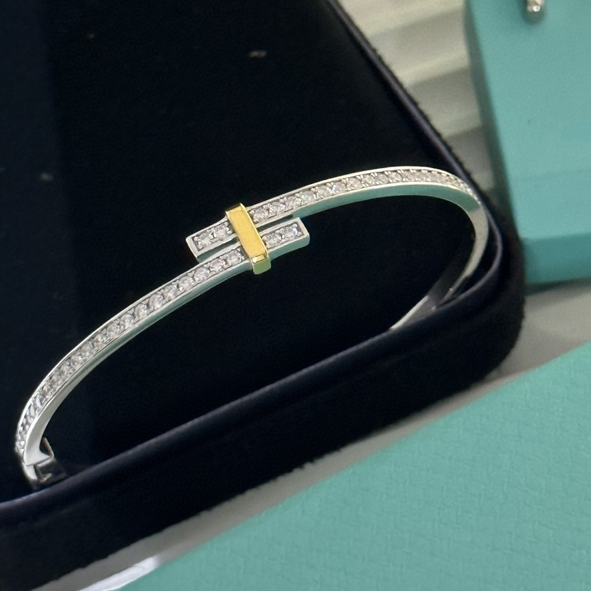 日韩新款交叉双T手镯纯银时尚ins港风潮流饰品手环高端定制女