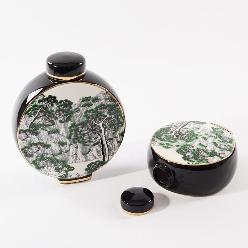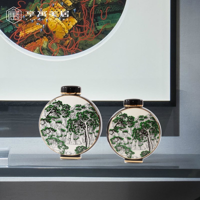 新中式现代创意风景瓶陶瓷罐摆件样板间书M房客厅玄关茶几桌面摆
