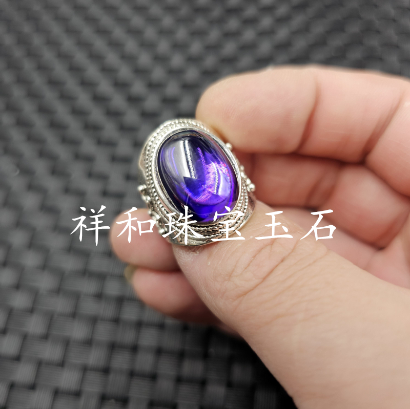包邮冰种红锆石蛋形玉坠戒指宝蓝色粉色黄色活口戒指仿古指环手饰