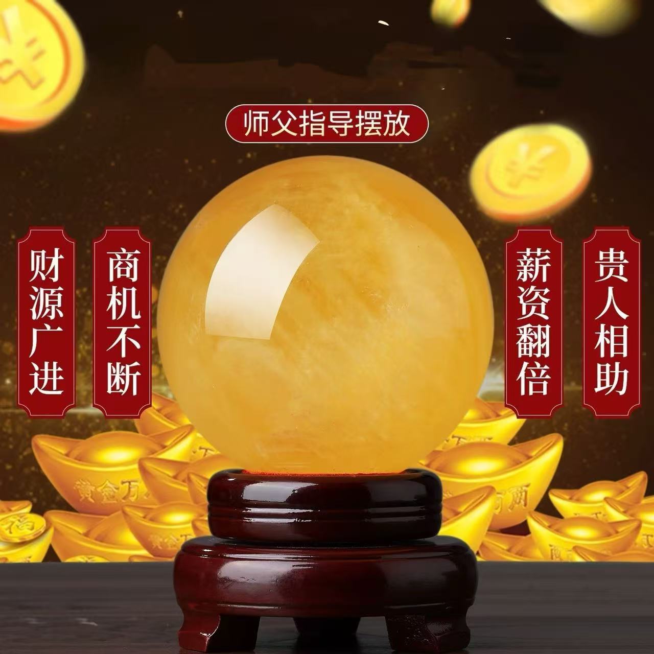 天然黄色水晶球摆件纯原石客厅厨房卧室办公室高档饰品摆件纯原石