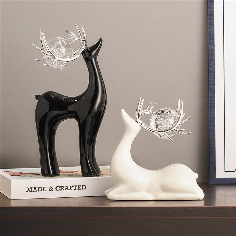 现代福鹿高级感客厅玄关酒柜装饰C摆件电视柜陶瓷轻奢摆件乔迁礼