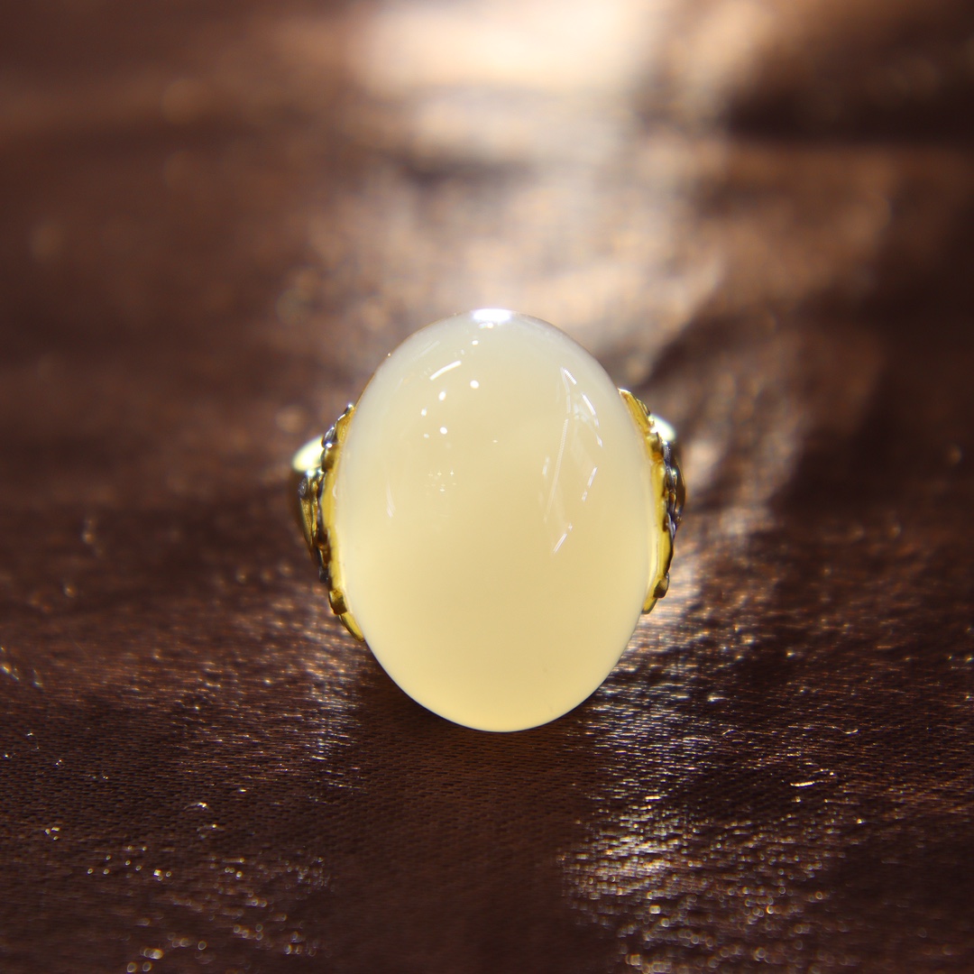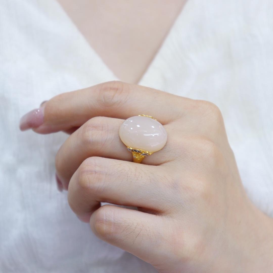 双十一特惠天然和田玉戒指女a货玉石藕粉白玉蛋面镶18k金指环送妈